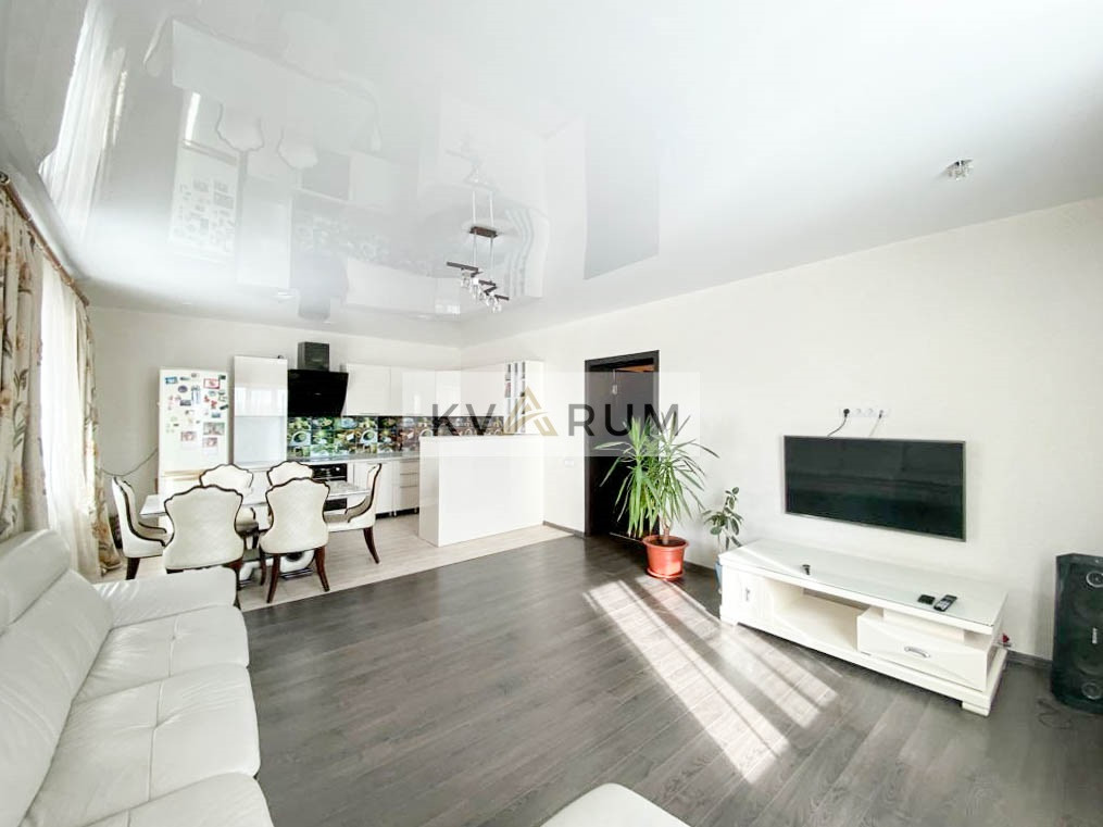 На первом этаже находится: Большая кухня - гостиная 34,2 кв.м.. Кухонный гарнитур выполнен в современном стиле со встроенной и всей необходимой дорогой бытовой техникой (варочная электропанель, духовой шкаф, посудомоечная машина, вытяжка, холодильник). Прихожая 18,6 кв.м. Гостевой с/у совмещен и выложен керамической плиткой, установлена новая сантехника. Котельная с отдельным выходом во двор. Лестница на второй этаж выполнена из дерева.