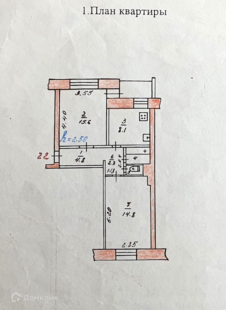 Квартира расположена на 3 этаже 5 этажного кирпичного дома. Общая площадь 49.8 кв.м, кухня просторная - 8,1 кв.м, санузел раздельный, лоджия застеклена.