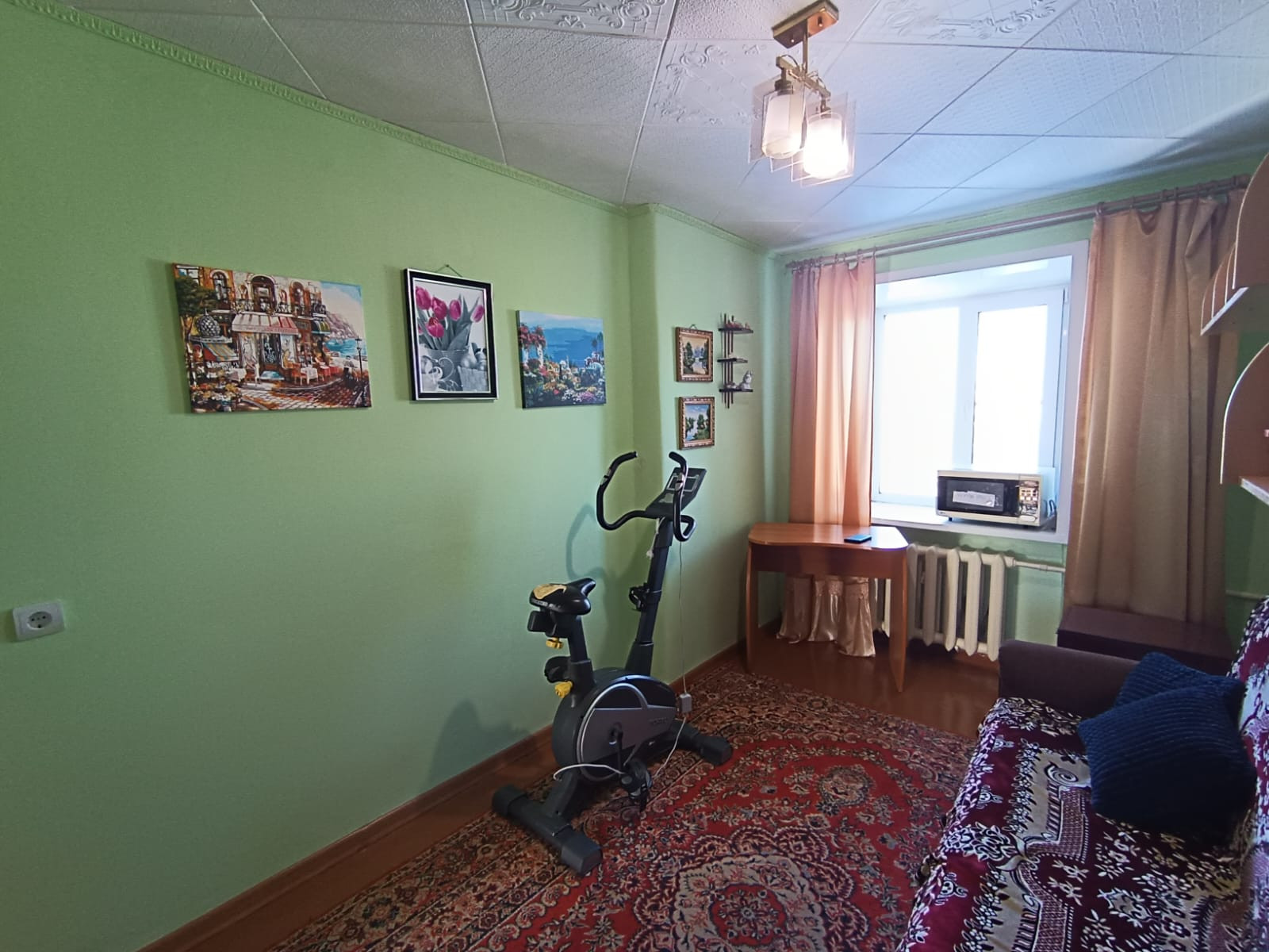 В квартире выполнен косметический ремонт, установлены пластиковые окна, батареи оставили чугунные- зимой очень жарко, комнаты раздельные, выходят на обе стороны дома, санузел раздельный, балкон со стороны зала- застеклен.