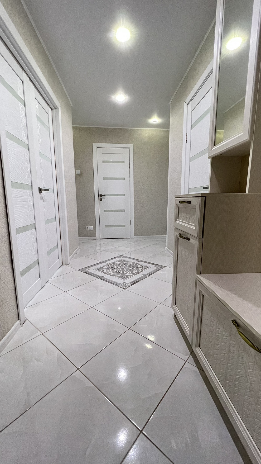 Трёхкомнатная квартира с идеальным евроремонтом. Квартира имеет удобное расположение. В шаговой доступности находятся детский сад, школа, дом культуры, спортивно-оздоровительный комплекс, бассейн, магазины. Установлены тёплые полы.