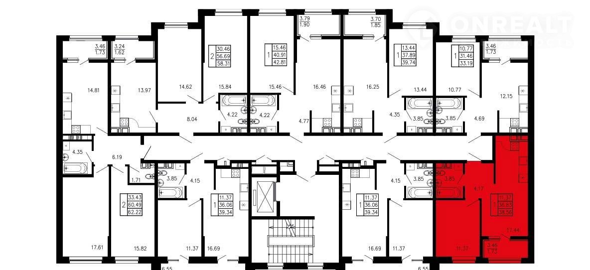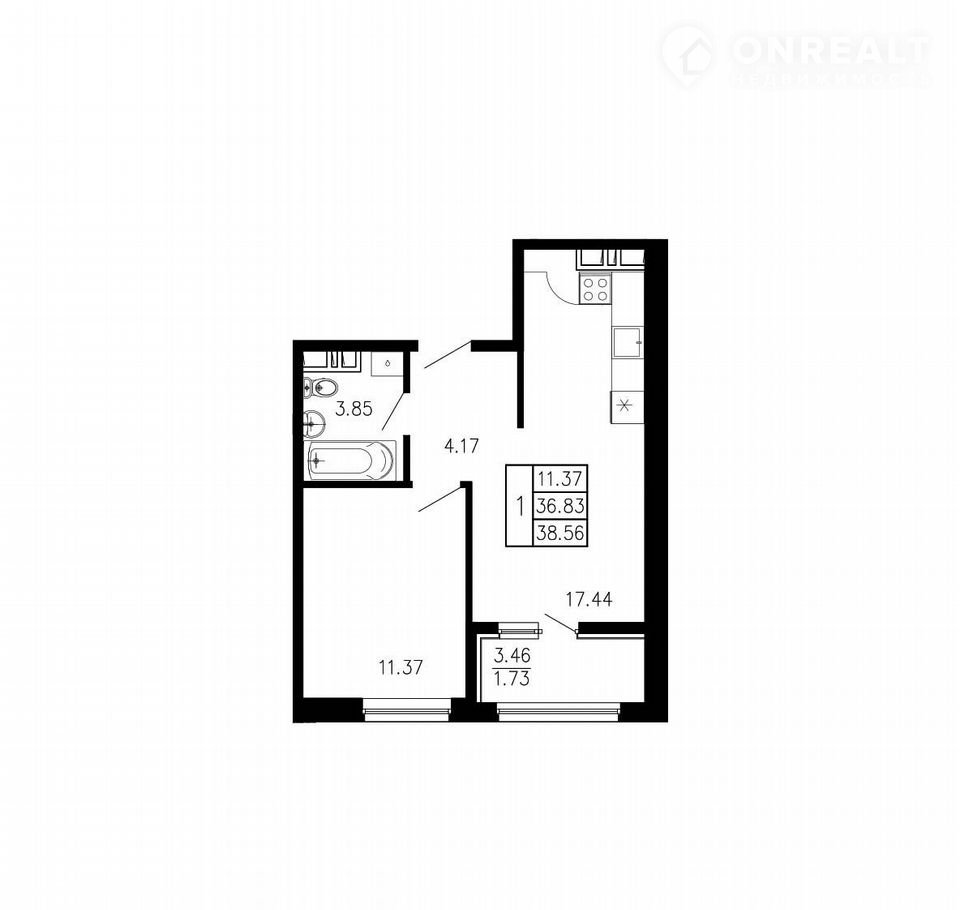Общая площадь 38.6 м2