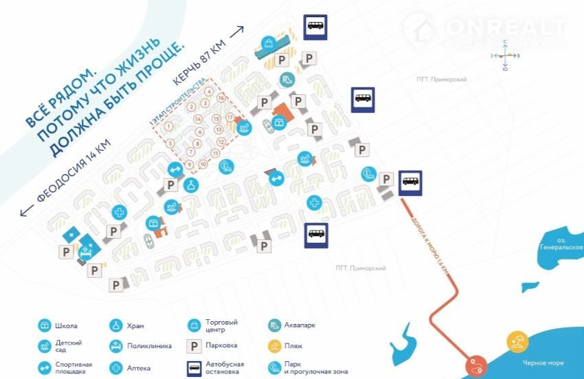Откройте для себя идеальное место для жизни. Жилой квартал расположенный в шаговой доступности от берега моря. Образец современного продуманного подхода к созданию жилого пространства. Дома жилого квартала имеют исключительные виды на акваторию Черного Моря. Особой ценностью является местоположение проекта: близ Керченского пролива – излюбленная локация крымчан и гостей с материка. Здесь одновременно будет уживаться большое количество объектов как современной, так и традиционной культуры.