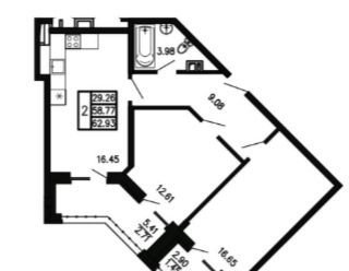 Общая площадь 62.9 м2