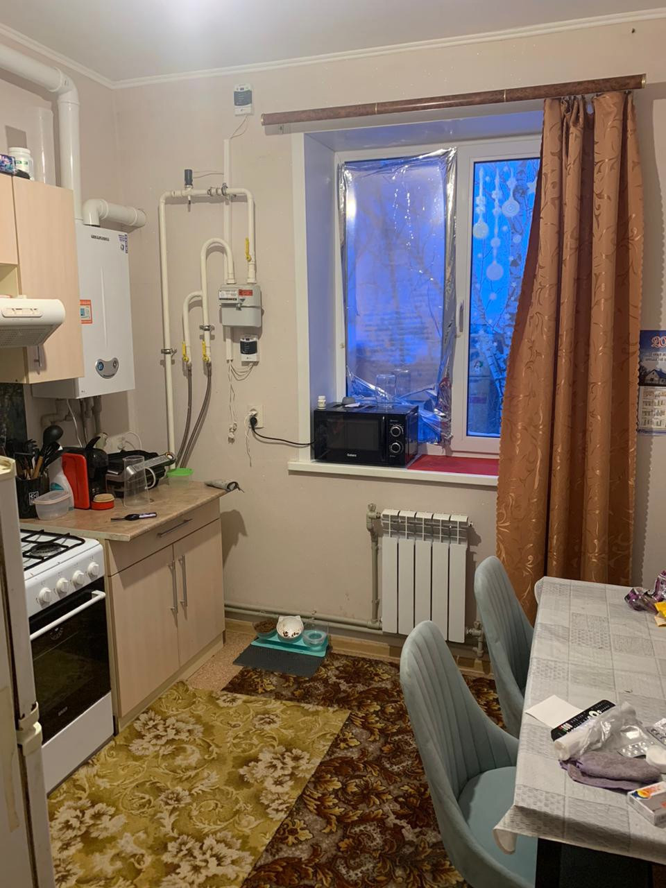 Пол залитый, индивидуальное отопление, окна пластик.