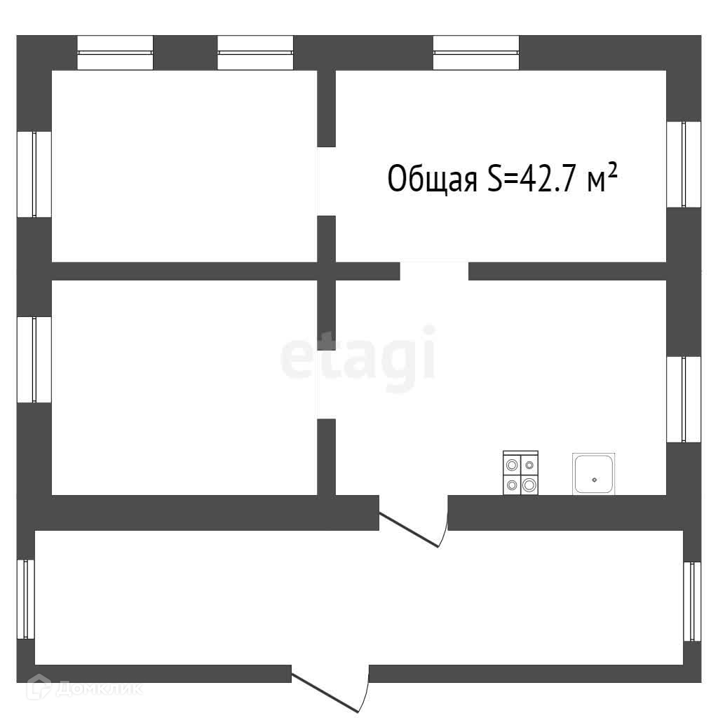 Общая площадь 42.7 м2