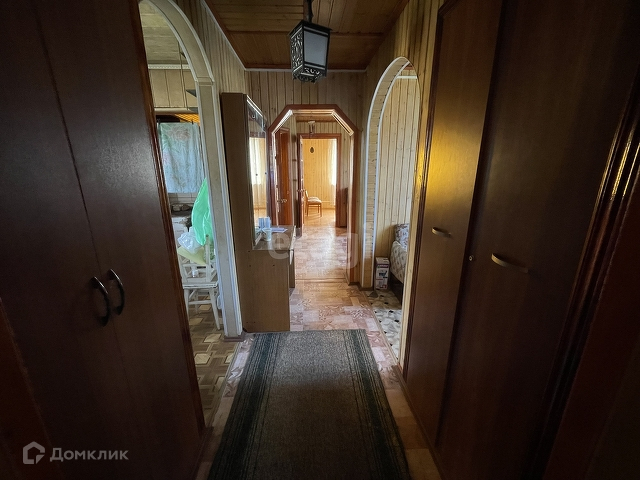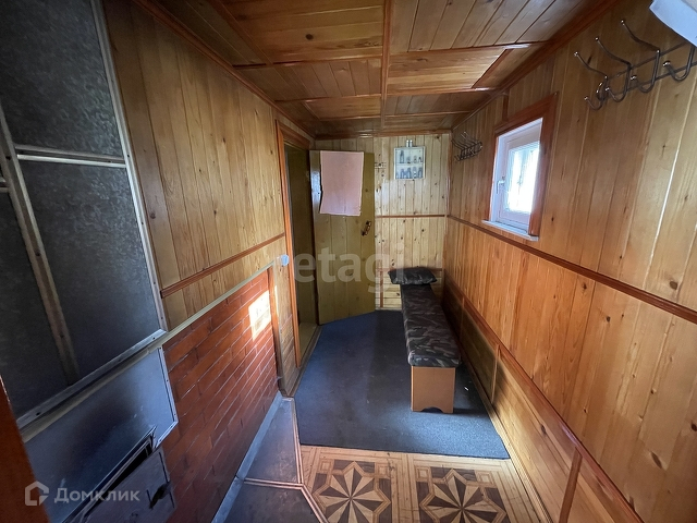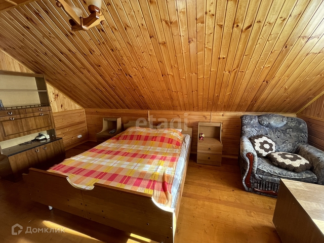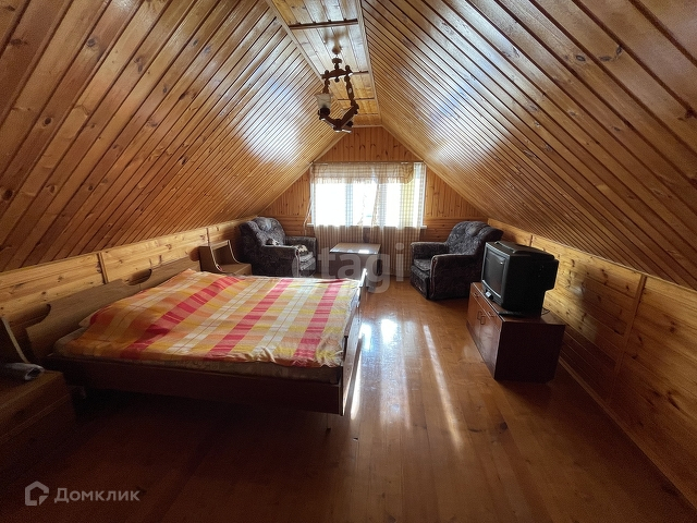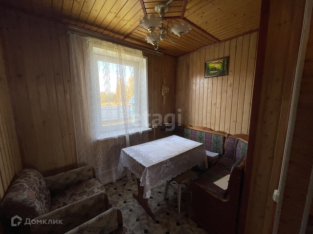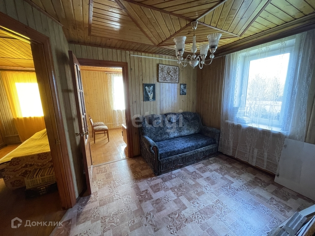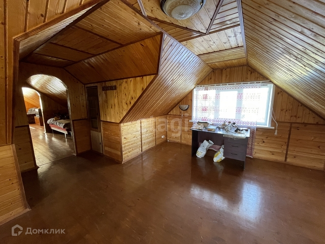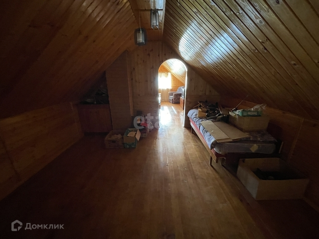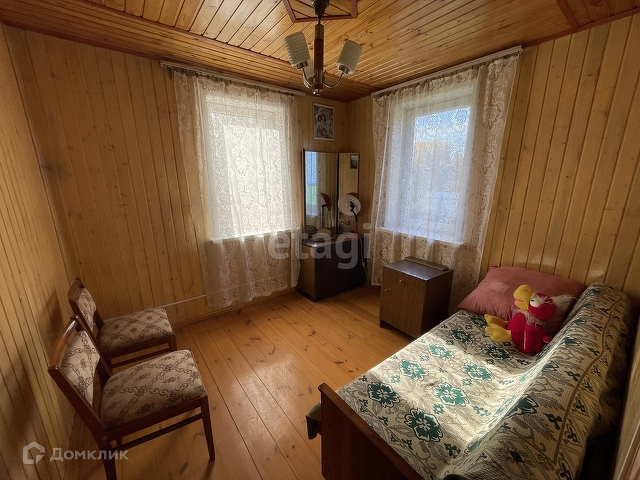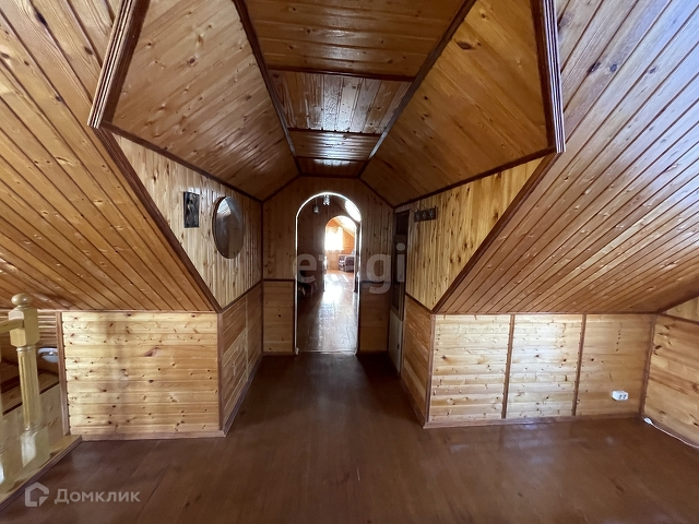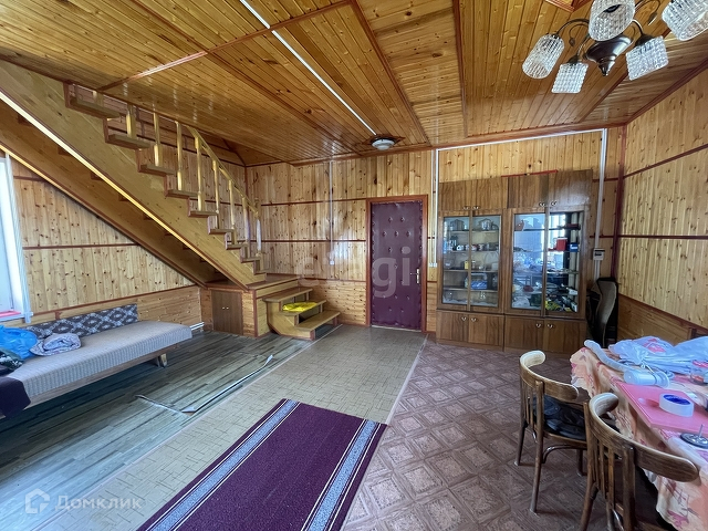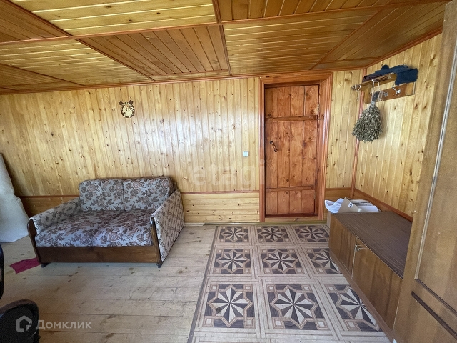Дом бревенчатый, обшит внутри евровагонкой « под лак». Благодаря низкой теплопроводности древесины, в таком доме тепло зимой, и прохладно в жару.