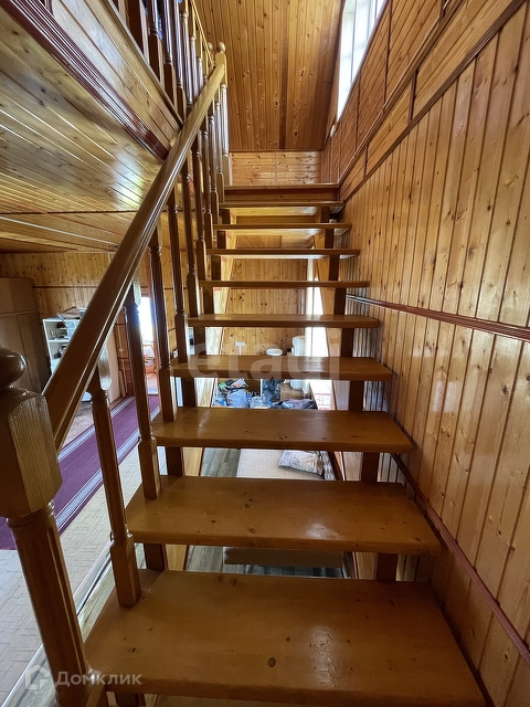 На первом этаже огромная гостиная , и ещё 4 комнаты.  Деревянная лестница ведёт на второй этаж- мансарду, где находятся еще 2 комнаты.