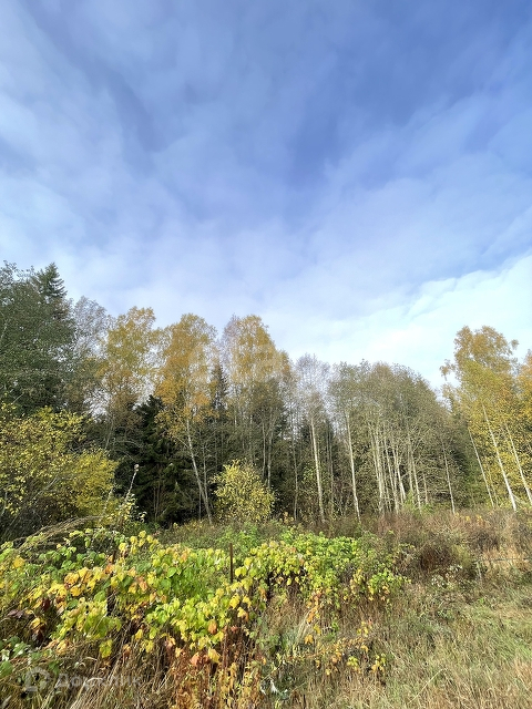 Участок разработанный, граничит с сосновым лесом. На участке много плодово-ягодных насаждений: яблони, малина, смородина.