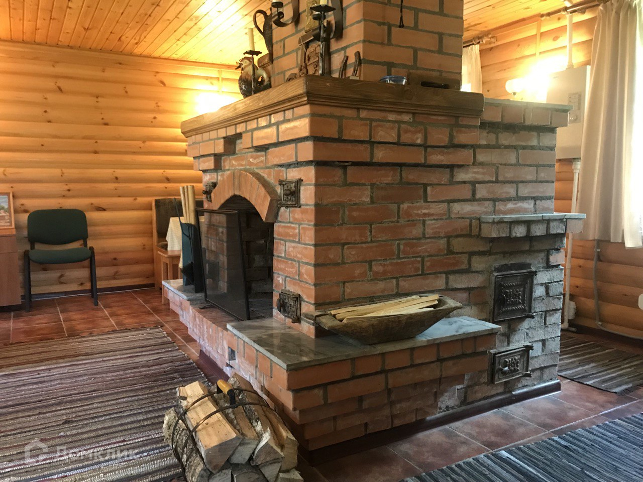 На первом этаже располагается большая кухня гостинная с дизайнерской печью камином, установлены тёплые полы.