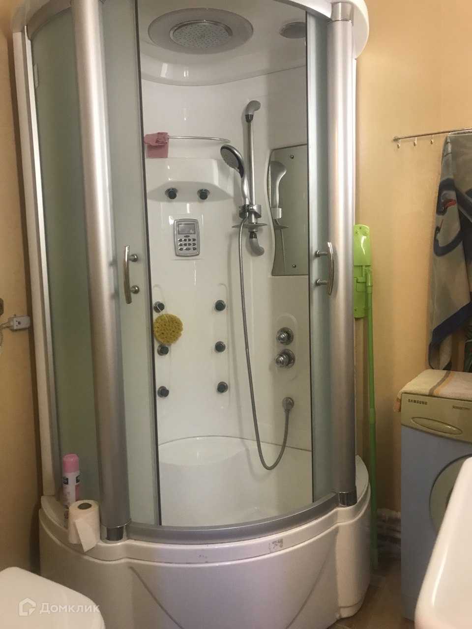 В санузле установлены бойлер, душевая кабина, раковина, стиральная машина.