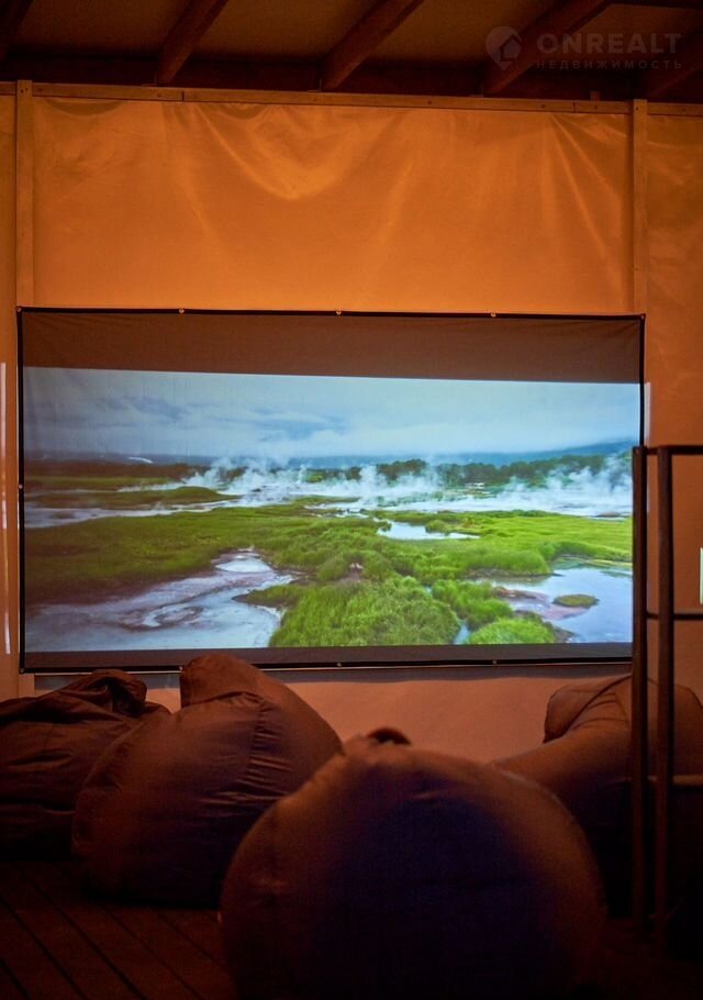 Крытая терраса, где можно заняться йогой или вечером посмотреть фильм на большом экране