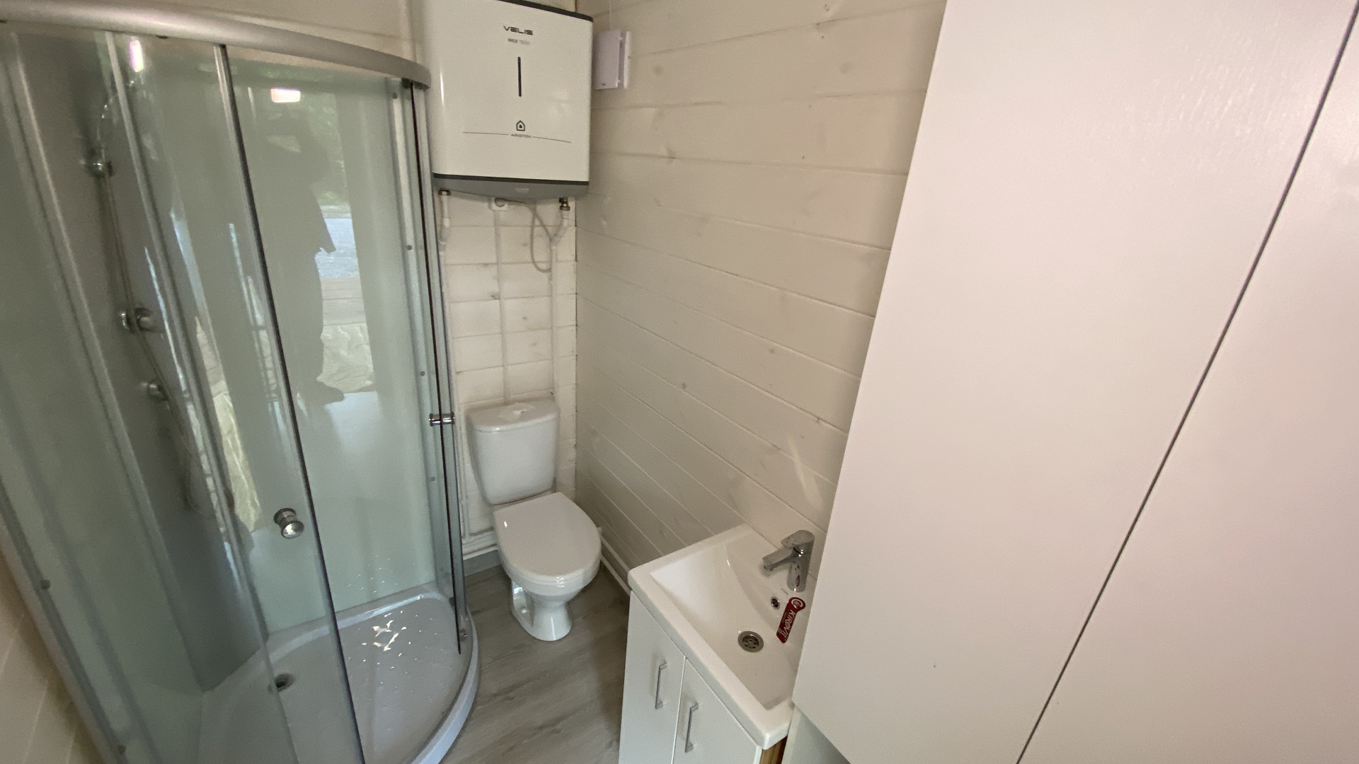 На полу ламинат Стены обшиты имитацией бруса. Натяжные матовые потолки, точечные светильники. Яркое освещение, даже в пасмурные дни в доме светло и уютно! Установлена сантехника: унитаз, душевая кабина, умывальник. Установлен водонагреватель, скважинная автоматика. В доме проведены все инженерные коммуникации: разводка электрики и центральный электрощит, разводка водопровода, разводка канализации, конвекторы. Дом очень теплый, зимой вы будете экономить на электричестве (электричество 15 кВт, 3 фазы).
