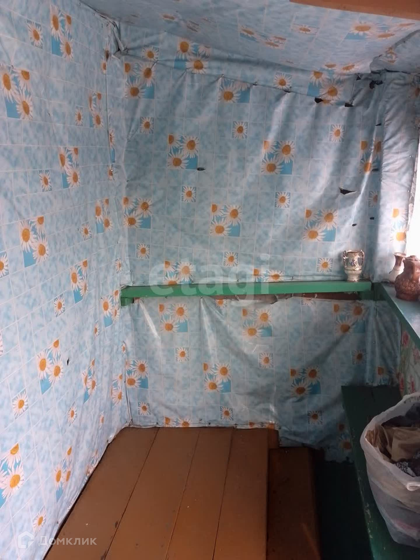 Небольшая кладовка . Во дворе есть дровенник,гараж,баня, небольшой огород. земля разработана,В саду есть поздняя яблоня,смородина.