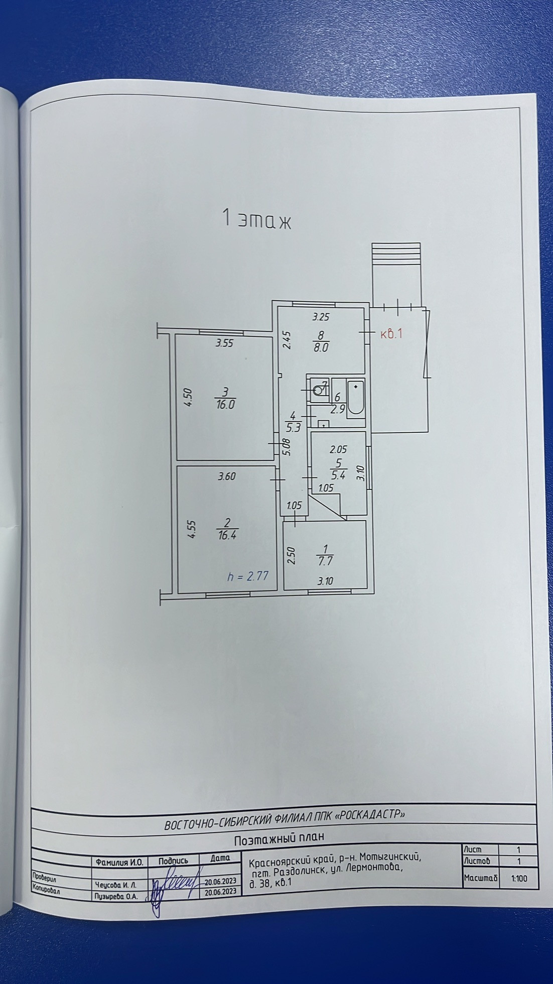 Высота потолков 2.77 м