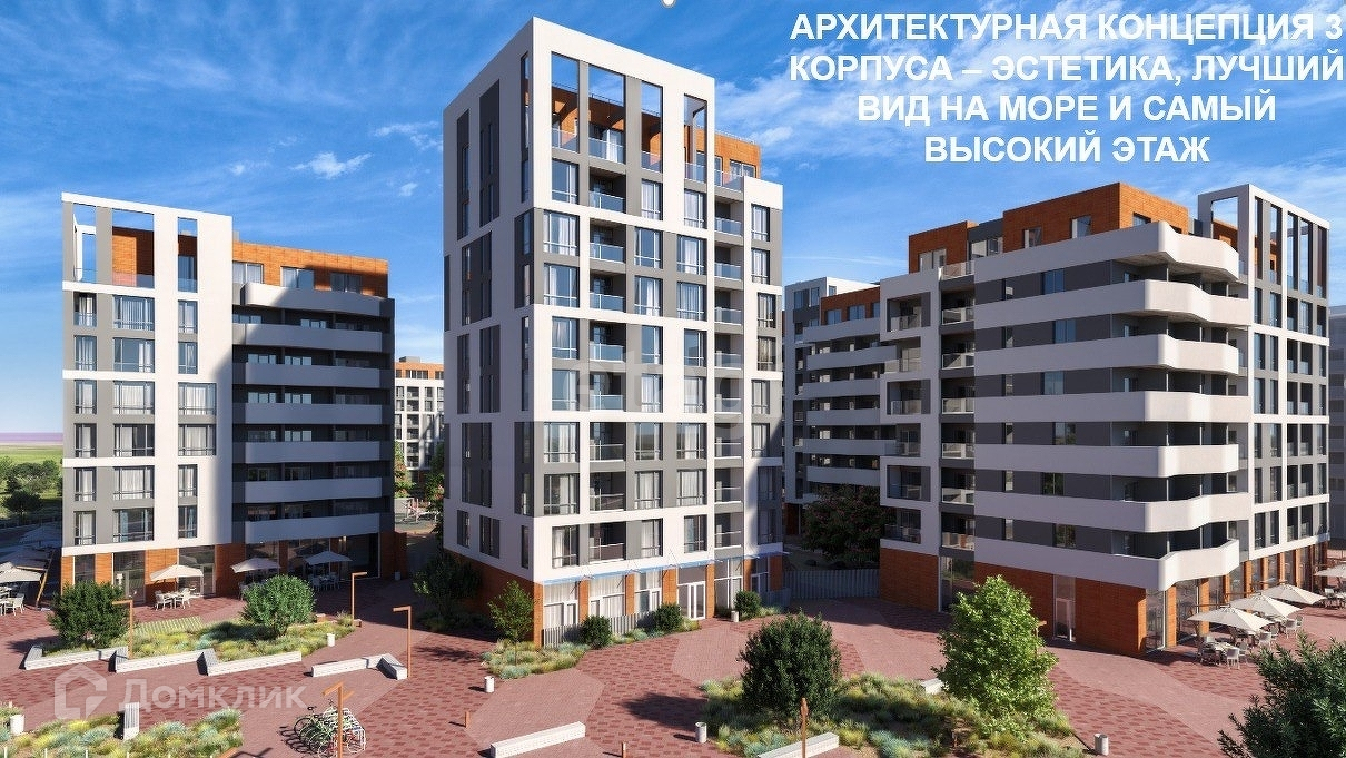 В продаже однокомнатная квартира в новом десятиэтажном доме жилой комплекс Розовое озеро в Прибрежном, с видом на море.