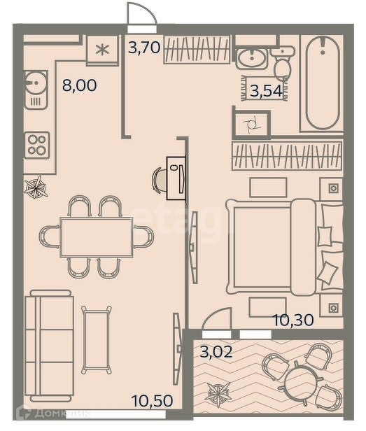Расположена квартира на 8 этаже Планировка по типу евродвушка ,спальня 10,3 м.кв и кухня гостинная 18,5 , совмещенный санузел .