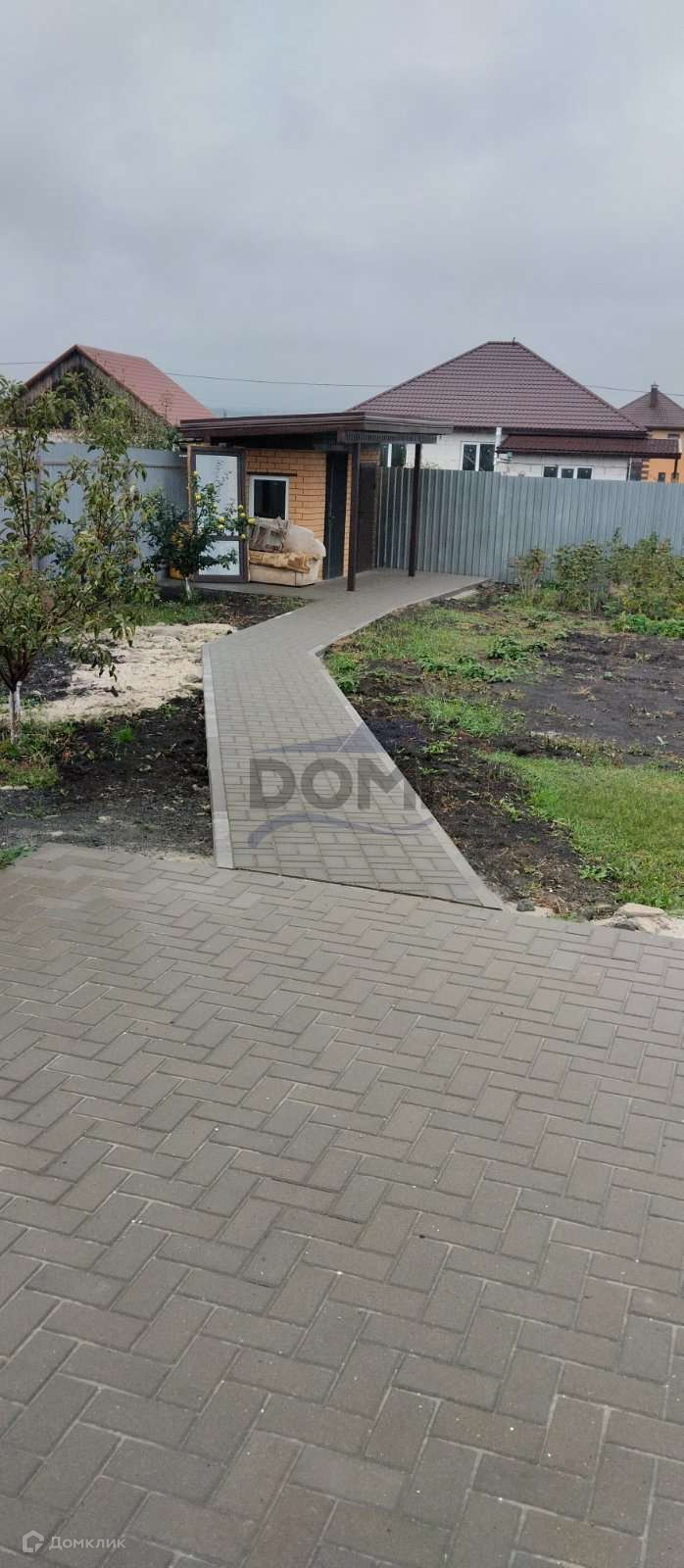 Участок полностью благоустроен забор, тротуарная плитка.
