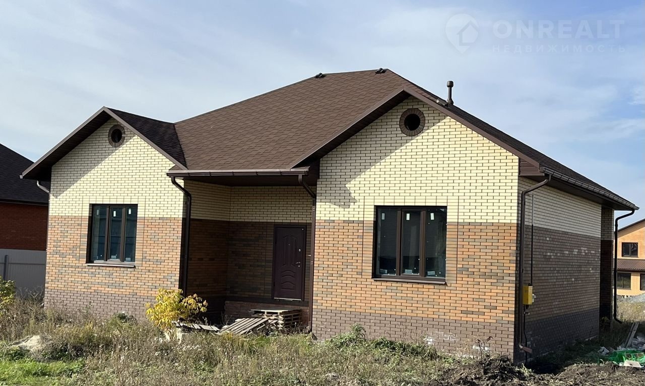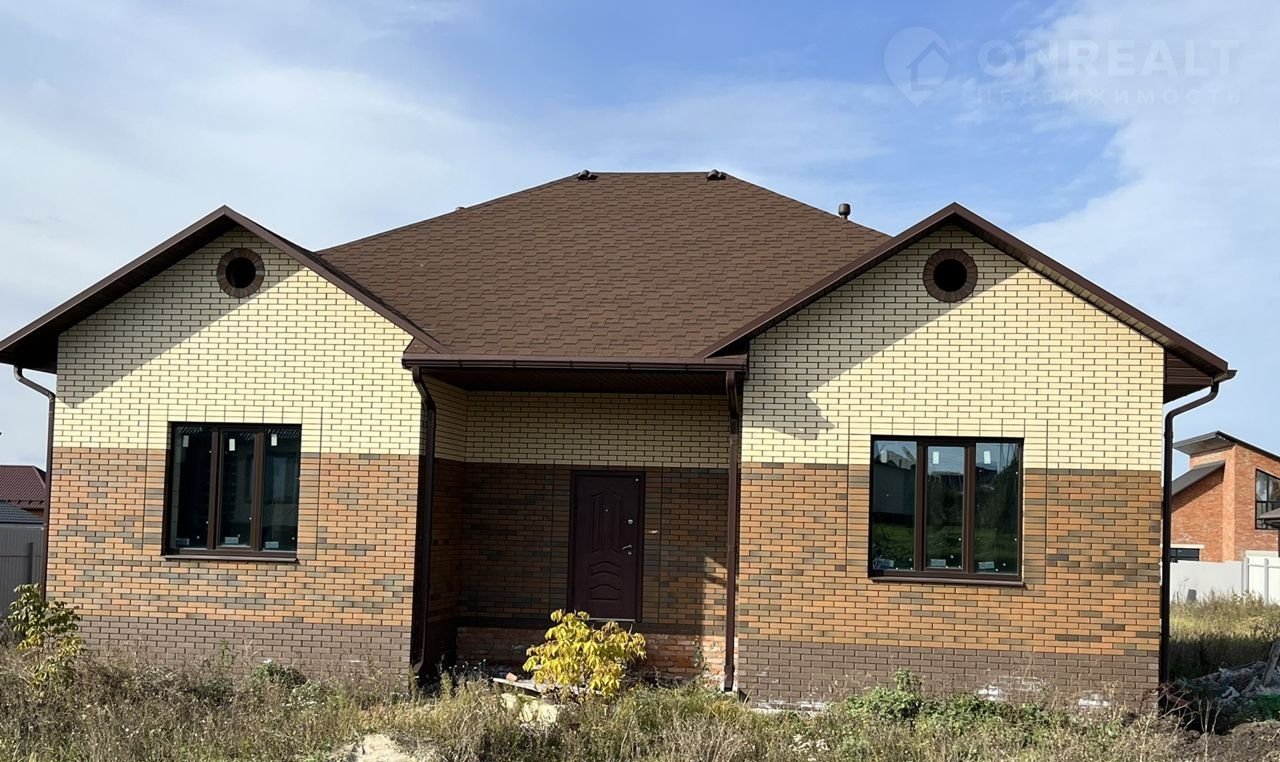 Дом построен из газоселикатного блока, облицован керамическим кирпичом, кровля мягкая , окна и двери ПВХ с двухкамерным энергосберегающим стеклопакетом, профиль пятикамерный, цвет профиля - под дуб.