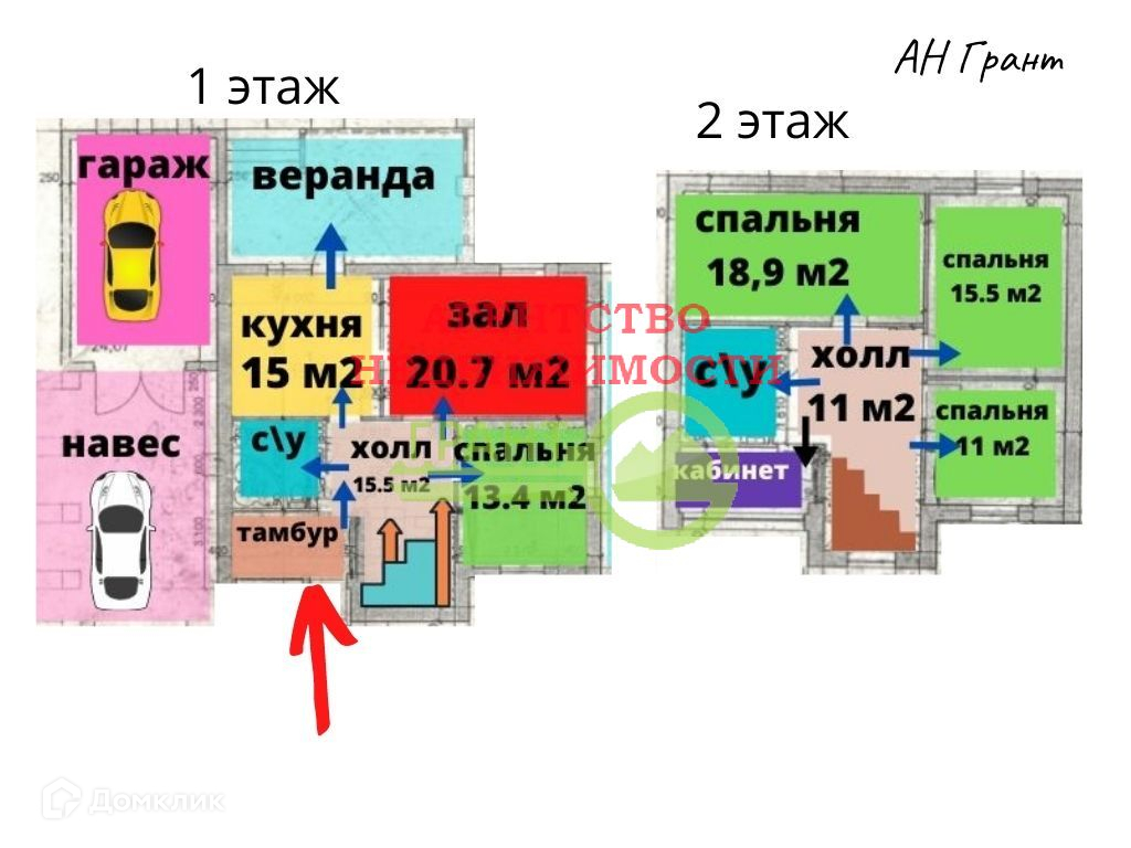4 спальни, 2 с/у, гараж пристроен к дому, навес