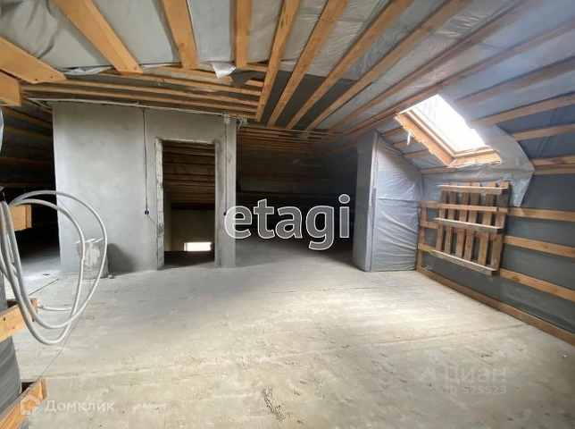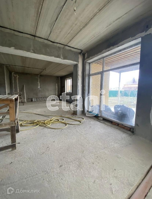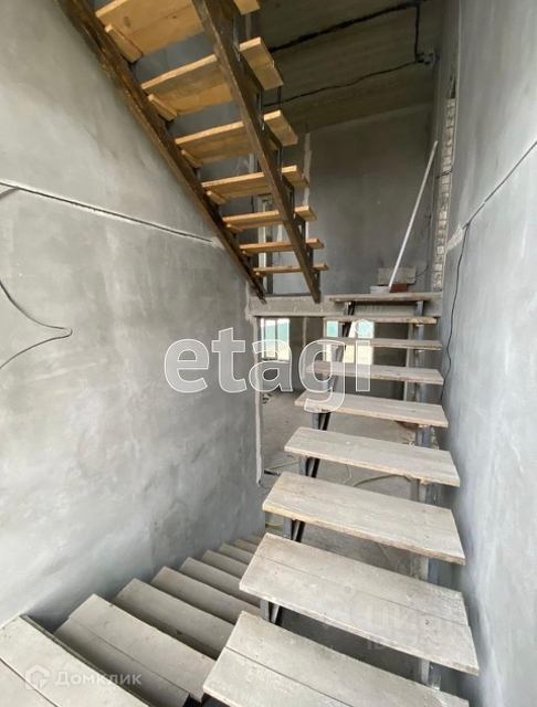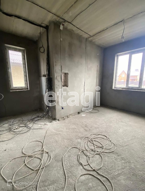В доме выполнена черновая отделка, все коммуникации разведены по дому, стены оштукатурены, смонтирован металлический каркас для лестницы.