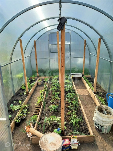 Участок ухоженный, вдоль забора высажены туи, розы, молодой и уже плодоносящий фруктовый сад из разных сортовых деревьев, посажена клубника, смородина и разные овощи. На участке есть беседка с барбекю-печью, в которой можно готовить шашлык, плов, тандырный хлеб, есть 2 сарая, теплица, вольер для собаки.