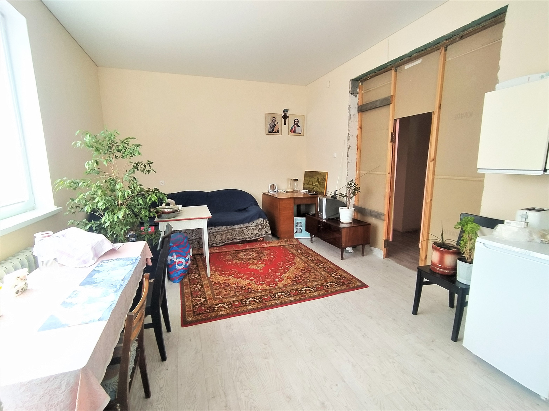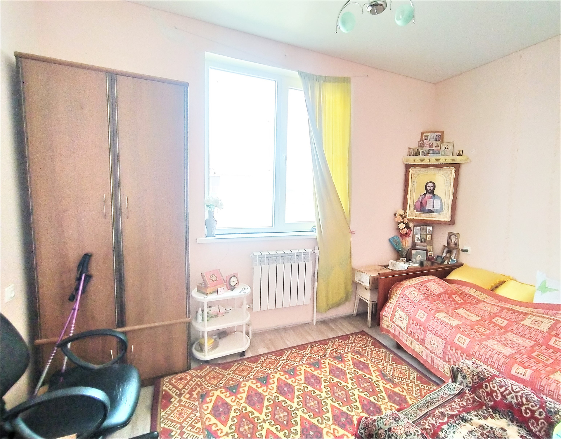 Окна ПВХ, новые радиаторы, на полу линолеум, частично натяжные потолки.