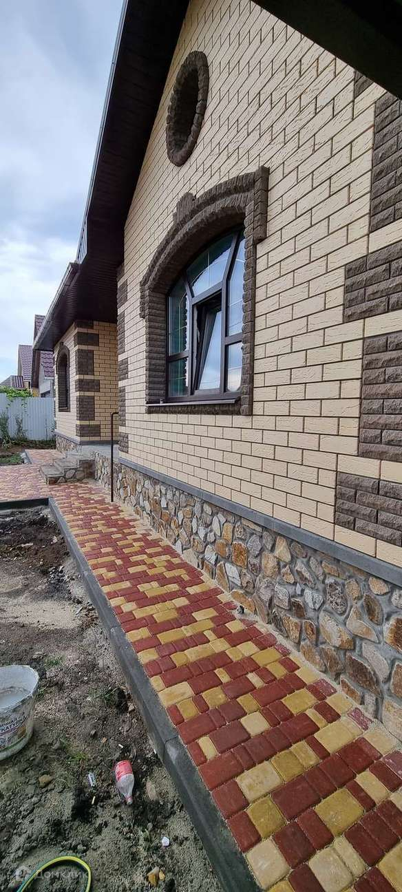 Сам дом построен из "Аэробела", облицовка выполнена кирпичом цвета "Солома" и фаготный кирпич цвета "Шоколад". Крыша сложной формы, что придает комфорта и уюта и сделана с использованием металлочерепицы. Оконные проемы из ламинированного под дерево ПВХ, что особо гармонирует с цветовой гаммой крыши и забора. Удобная и продуманная планировка включает в себя три изолированные жилые комнаты по 15 м.кв., 15 м.кв., 17 м.кв. + кухня - студия (50 м.кв.), котельная, 2 с/у, крытая терраса оснащенная зоной барбекю. Газ, эл-во, вода уже заведены в дом. Сам участок ровный, огорожен. Полное благоустройство территории (плитка во дворе, забор с воротами и калиткой). Район жилой и плотно заселен. Гараж оборудован электро-воротами, лампами дневного света, розетками, напольным покрытием выбран - напольный керамогранит. В г.Белгород на машине модно доехать всего за 3 минуты !!!. Готов для проживания )))))