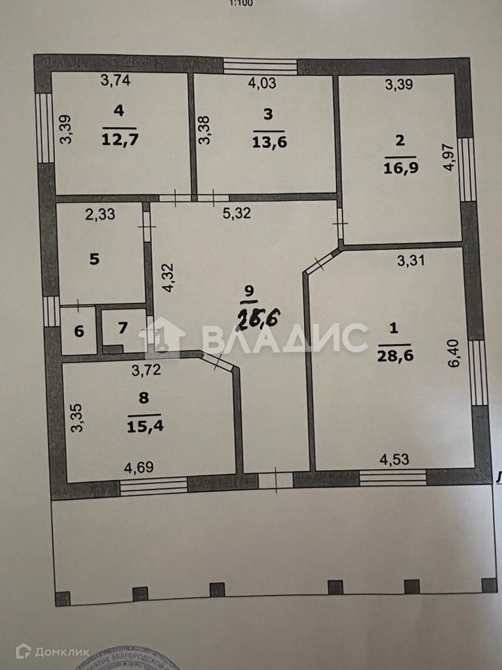 Кухня: 15.4 м2 позволит разместиться за дружным столом большой компании. Комнаты: 12.7; 13.6; 16.9; 28.6; м2.