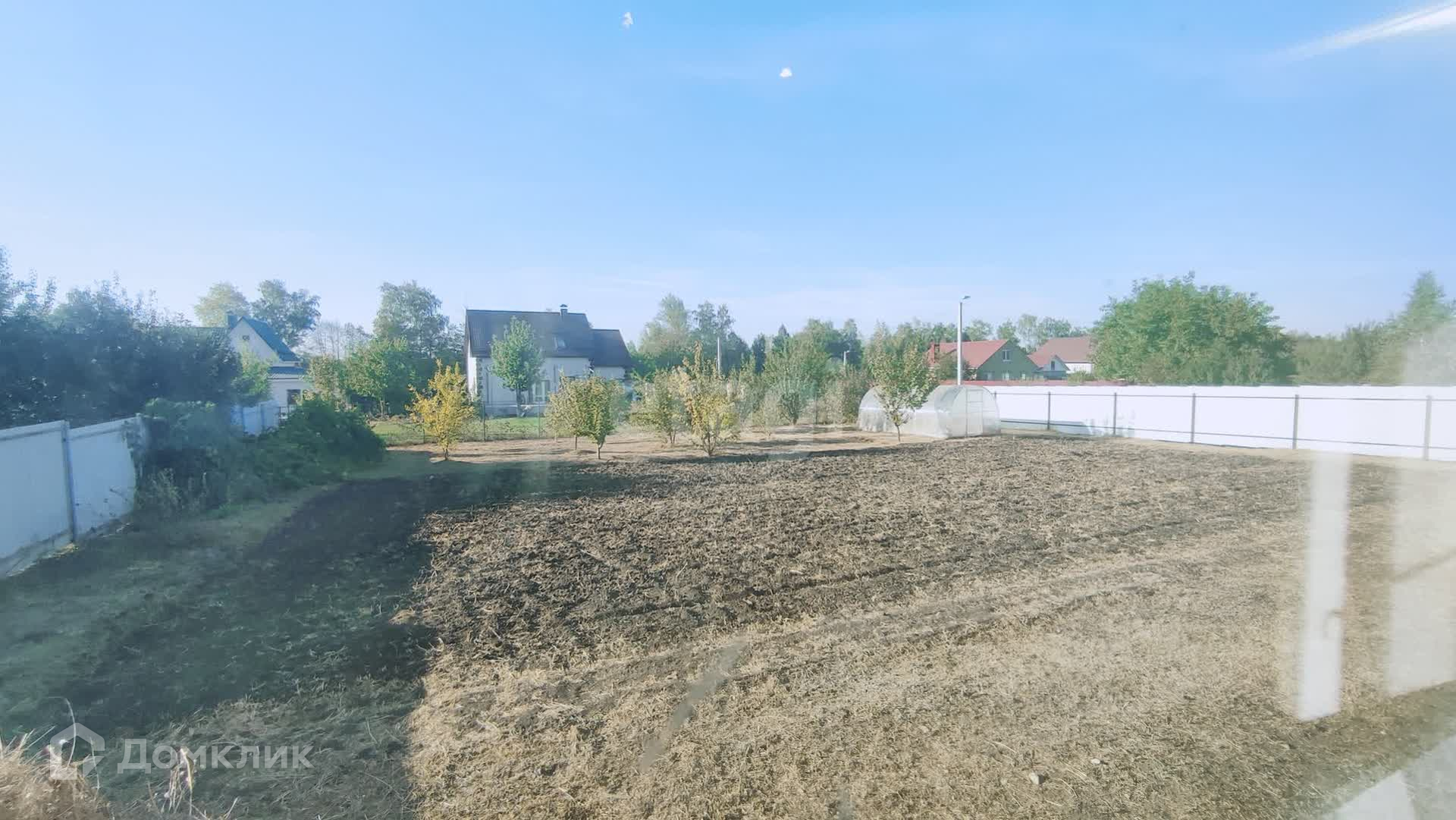 Участок угловой, огорожен забором, посажен молодой сад. На участке располагается теплица. Остановка общественного транспорта в шаговой доступности. Подъезд - асфальтированная дорога.