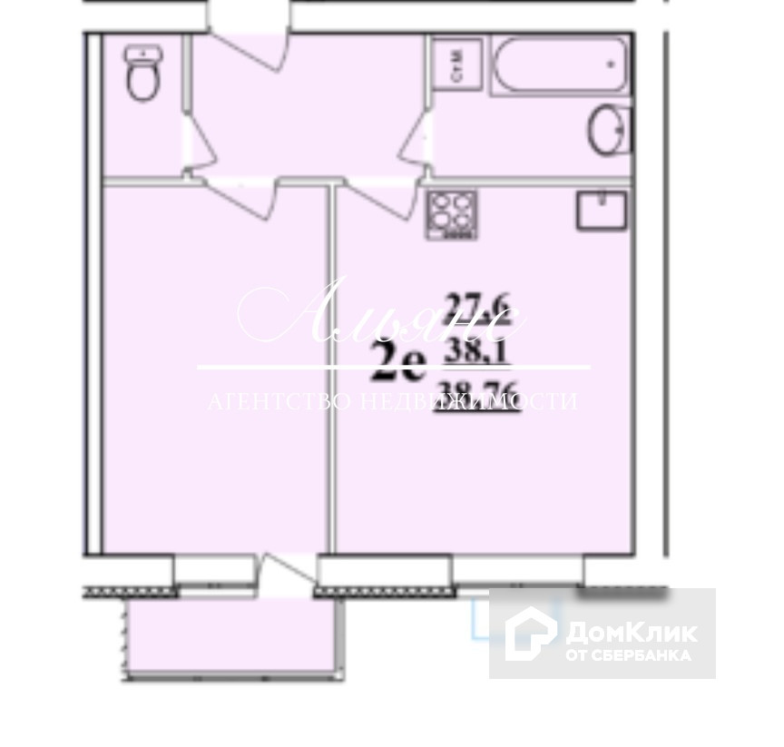 Жилая площадь 27.6 м2