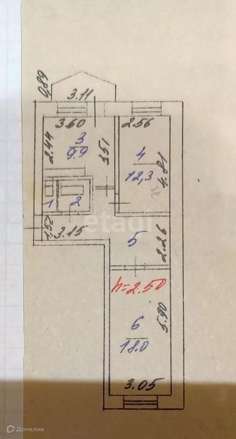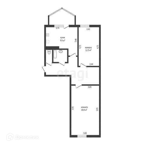 Общая площадь 57.8 м2