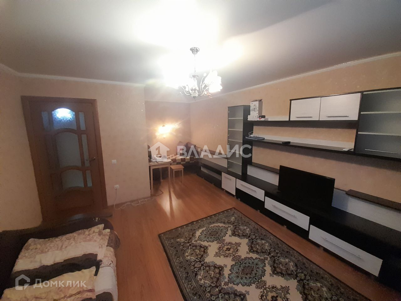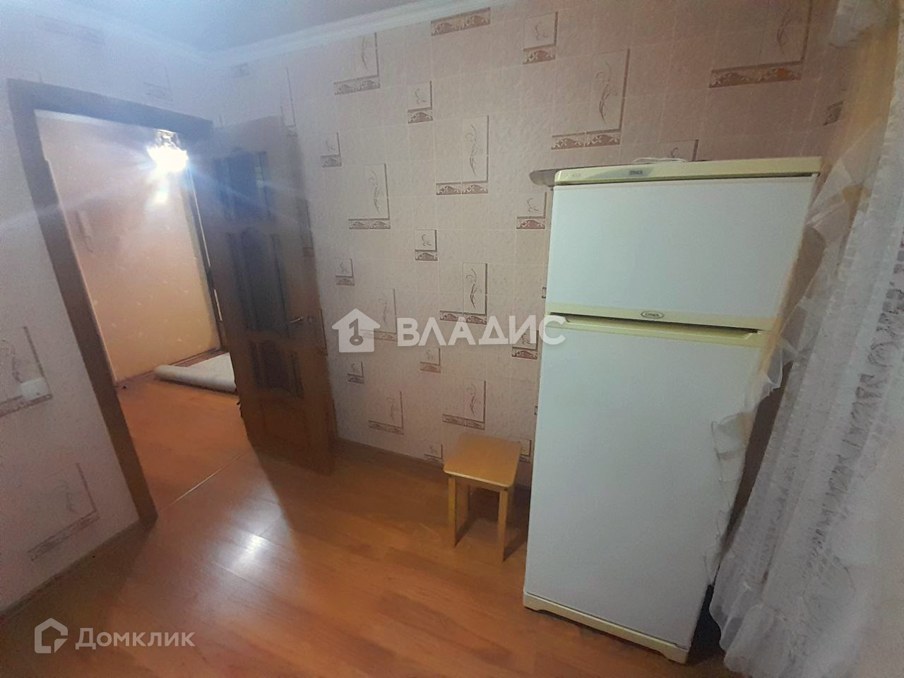 - поклеены современные обои, на полу ламинат,