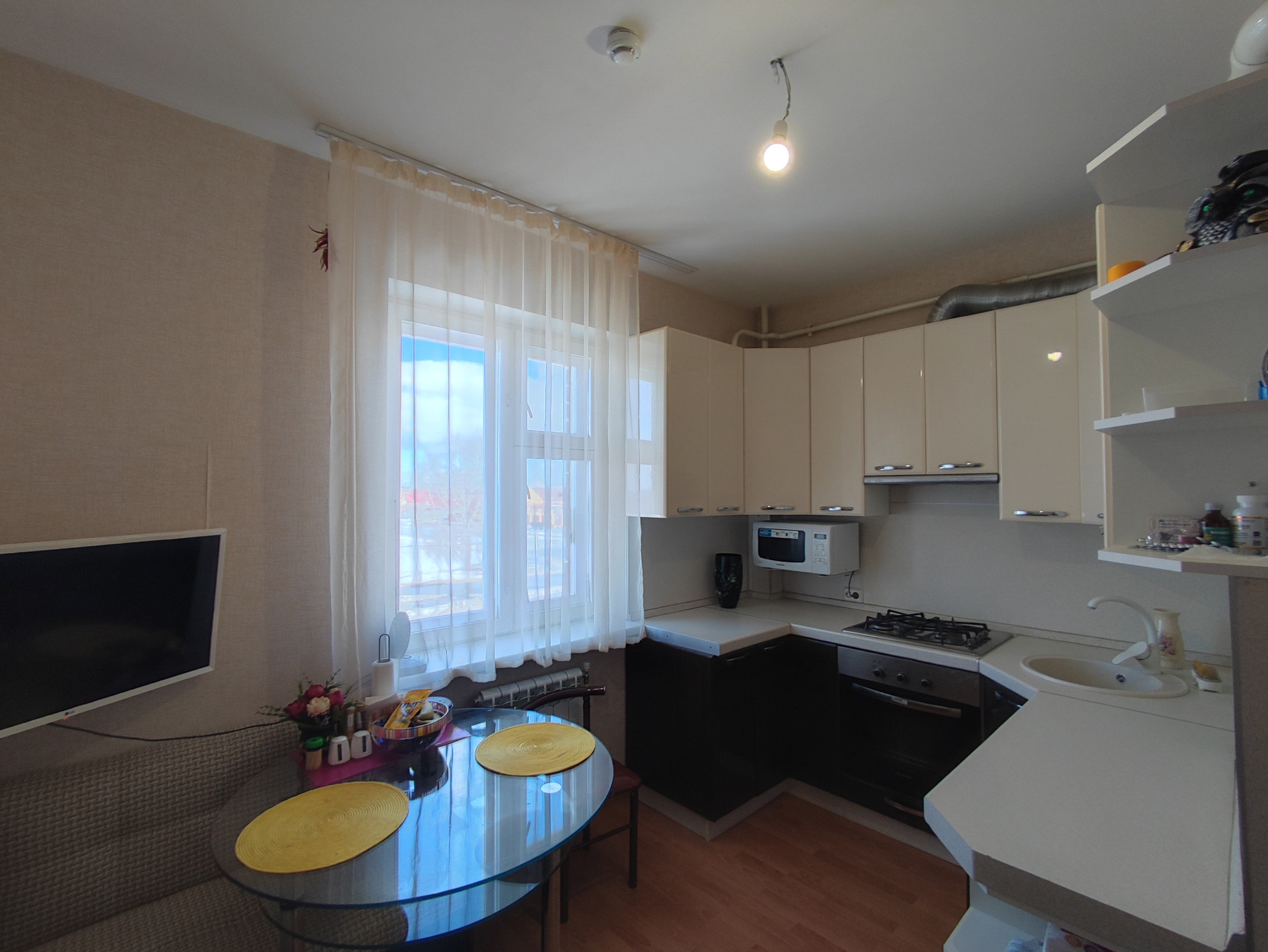 Продаётся 2-х комнатная квартира в комфортном для проживания районе "Новая Заря" (Разумное-54). Практичная планировка, комнаты изолированные, квартира светлая и уютная. Новым владельцам остаётся встроенный кухонный гарнитур с техникой, кондиционер, шкаф-купе, карнизы, шторы.