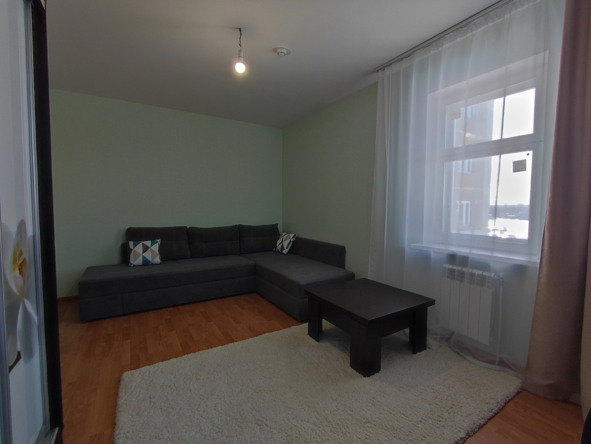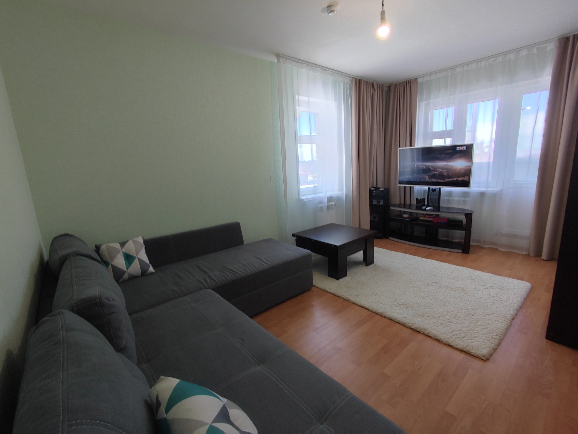 В квартире ремонт от застройщика: остекленный балкон, окна деревянные с раздельными переплётами, полы в жилых помещениях и кухне - ламинат, двери внутренние деревянные, наружные металлические, индивидуальные приборы учета электроэнергии, воды; система противопожарной безопасности. Отдельный тамбур на несколько квартир.
