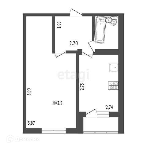 Общая площадь 35.6 м2