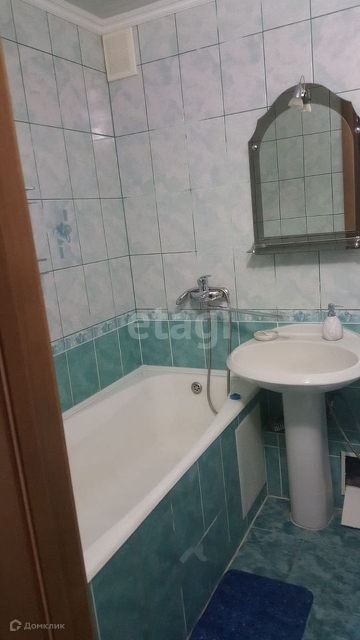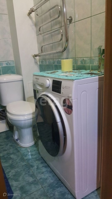 Санузел совмещенный. Новый смеситель. Новая стиральная машина на 6 кг. Зеркало и полочки для косметики. Полотенцесушитель.