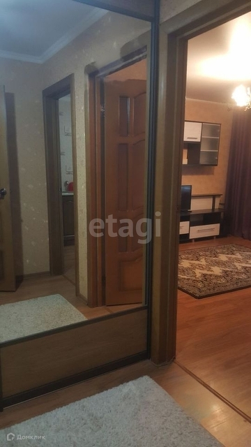 в коридоре очень вместительный шкаф-купе с двумя зеркальными дверьми, который был сделан на заказ.