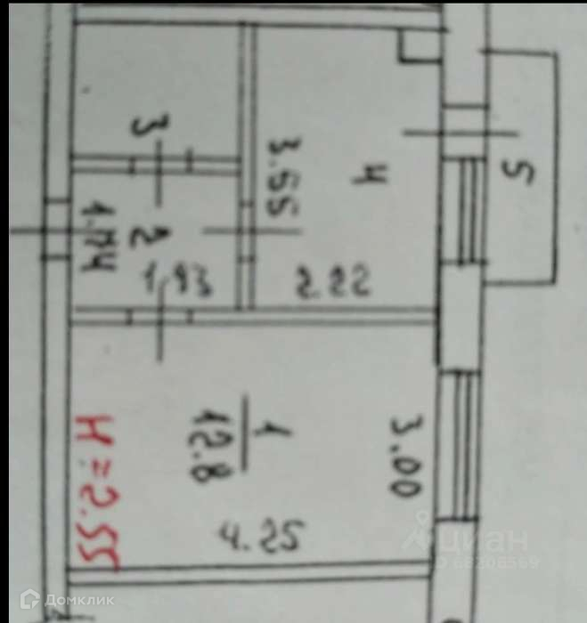 Жилая площадь 12.8 м2