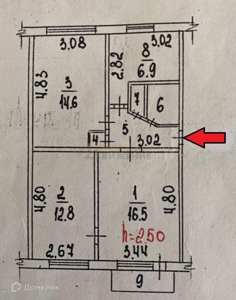Высота потолков 2.5 м
