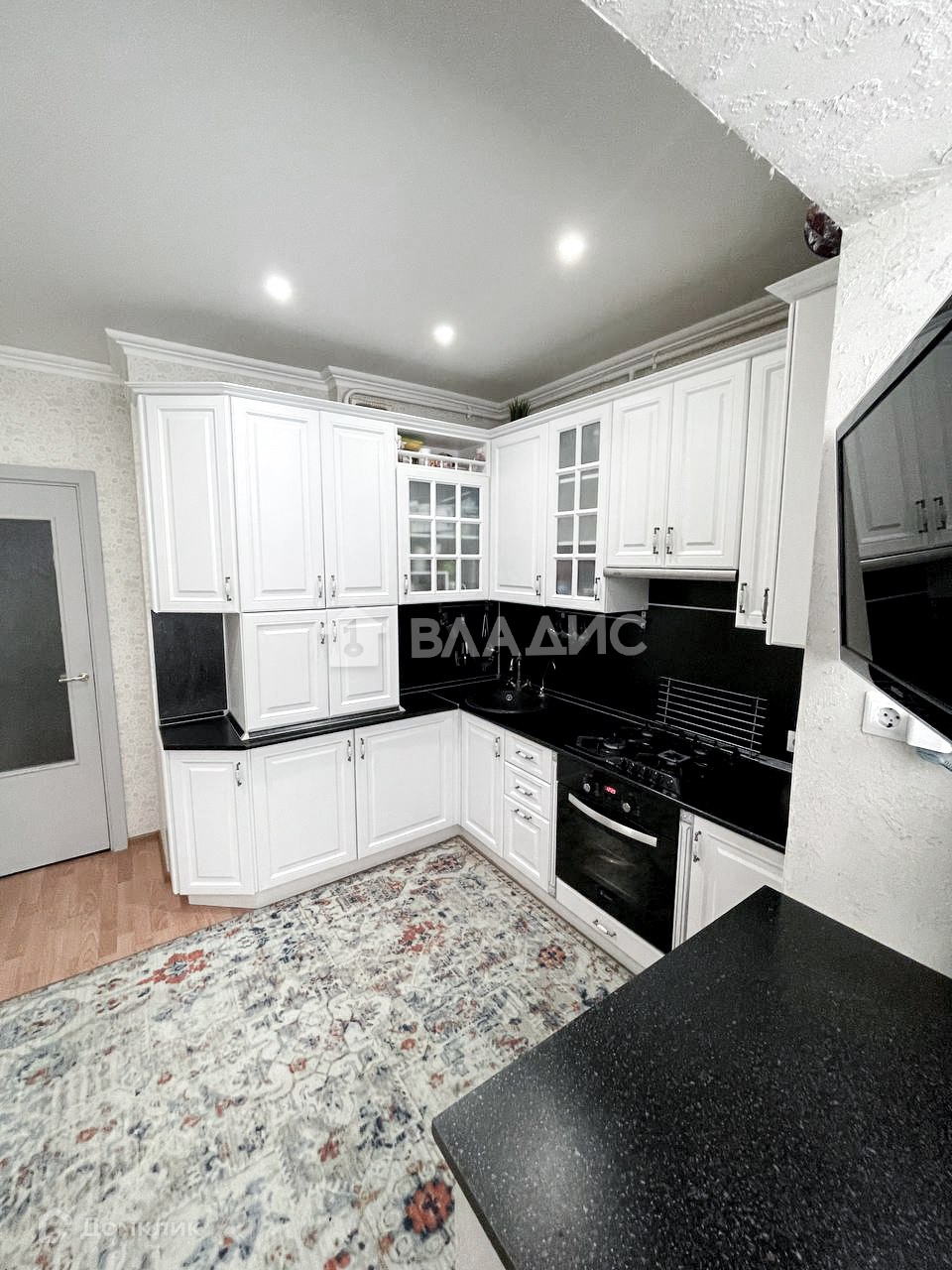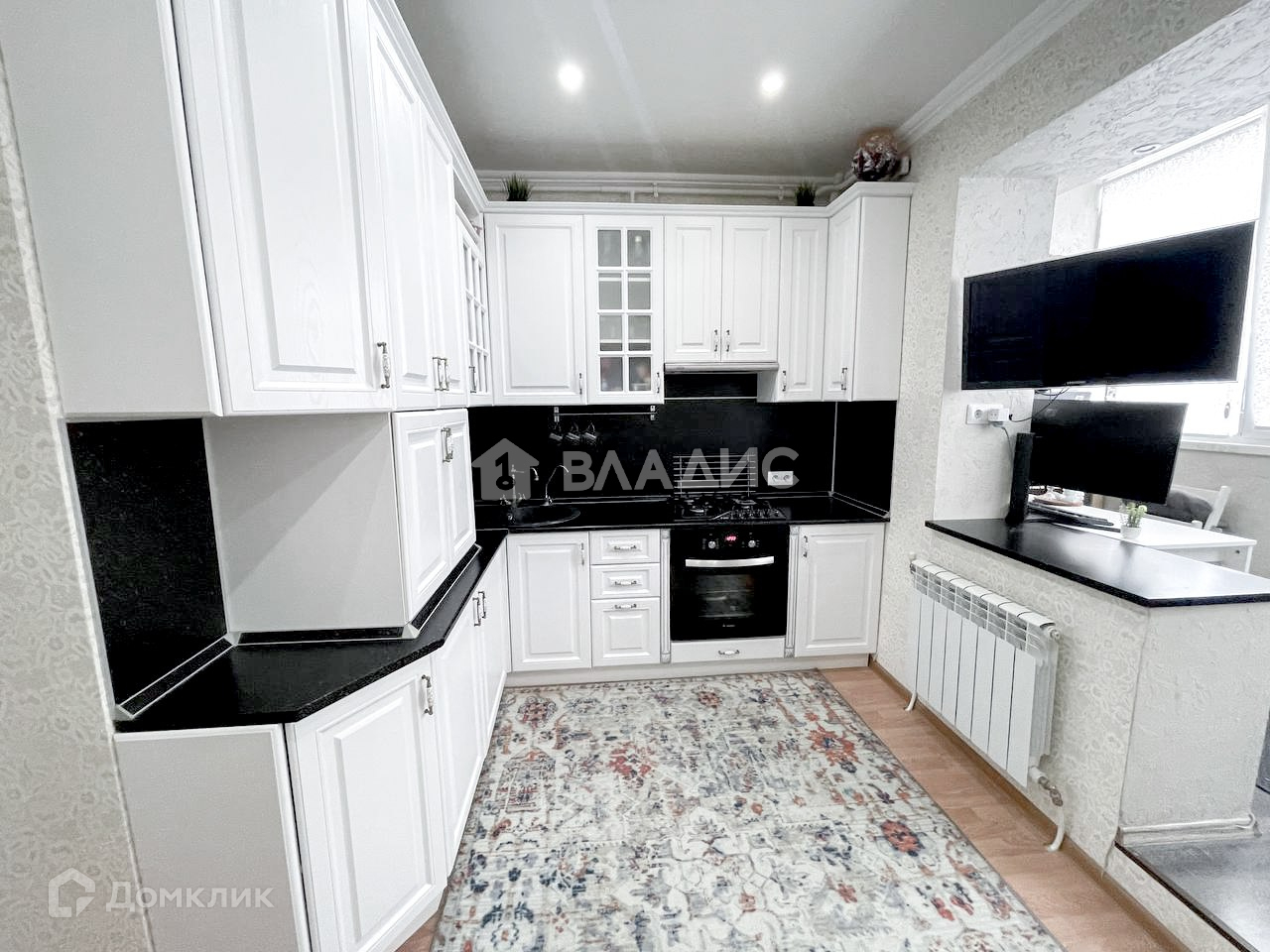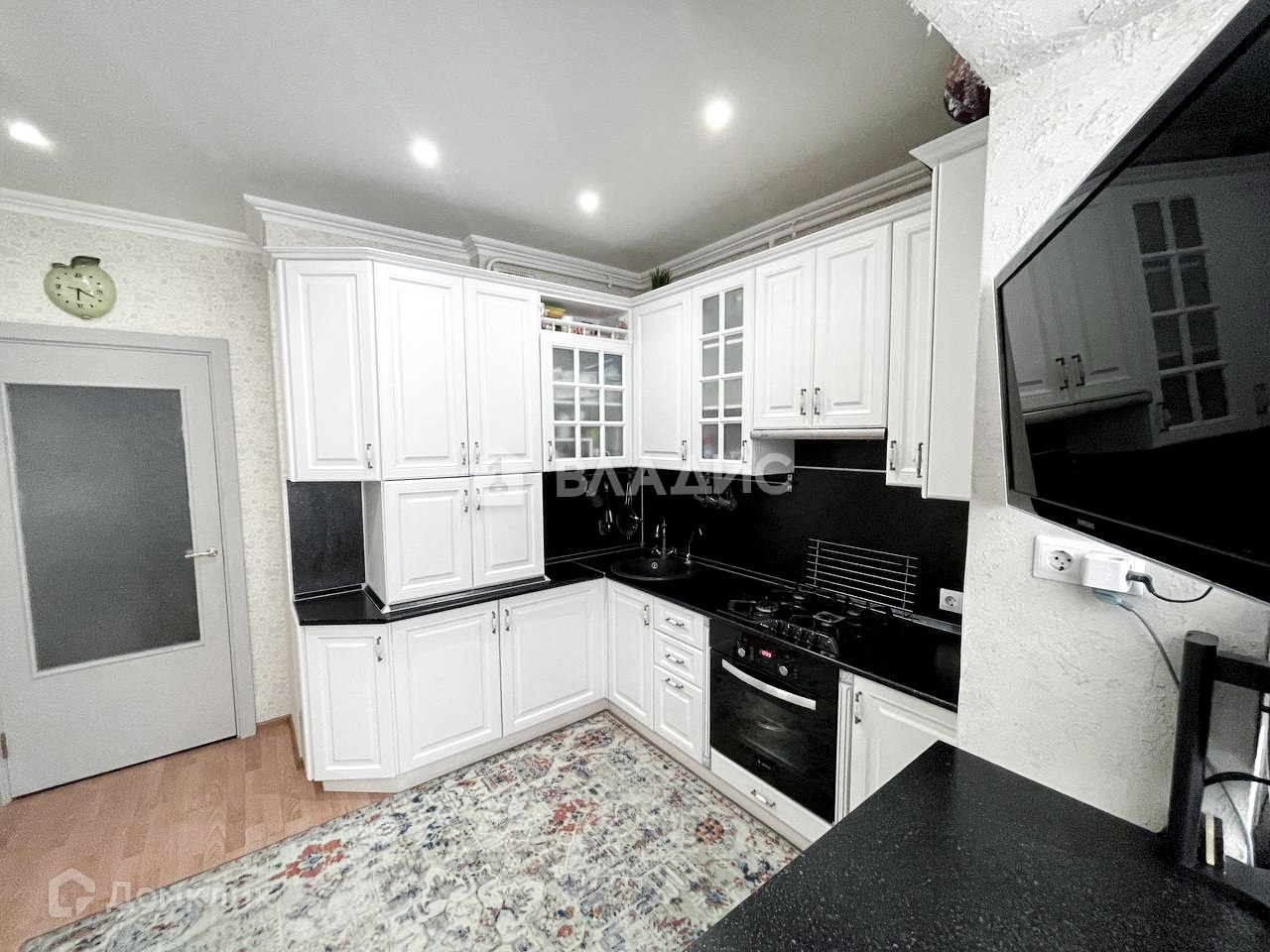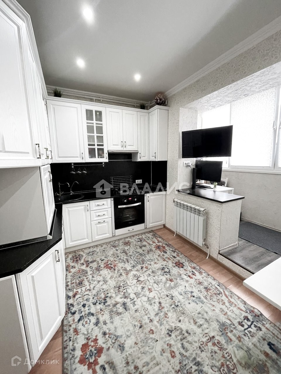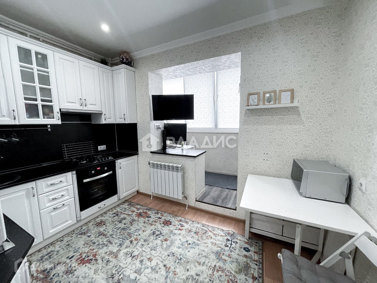 Новому собственнику останется изысканный черно - белый кухонный гарнитур, с варочной поверхностью и электрическим духовым шкафом, в котором получаются самые вкусные блюда для ваших семьи и гостей, есть система очистки воды с дополнительным специализированным смесителем. также остается холодильник. Обратите внимание на гарнитур в ванной - сочетание немного состаренного дерева с медью и накладным умывальником будет актуально еще многие годы. Балкон оборудован в рабочую зону, изменений контуров помещения нет.