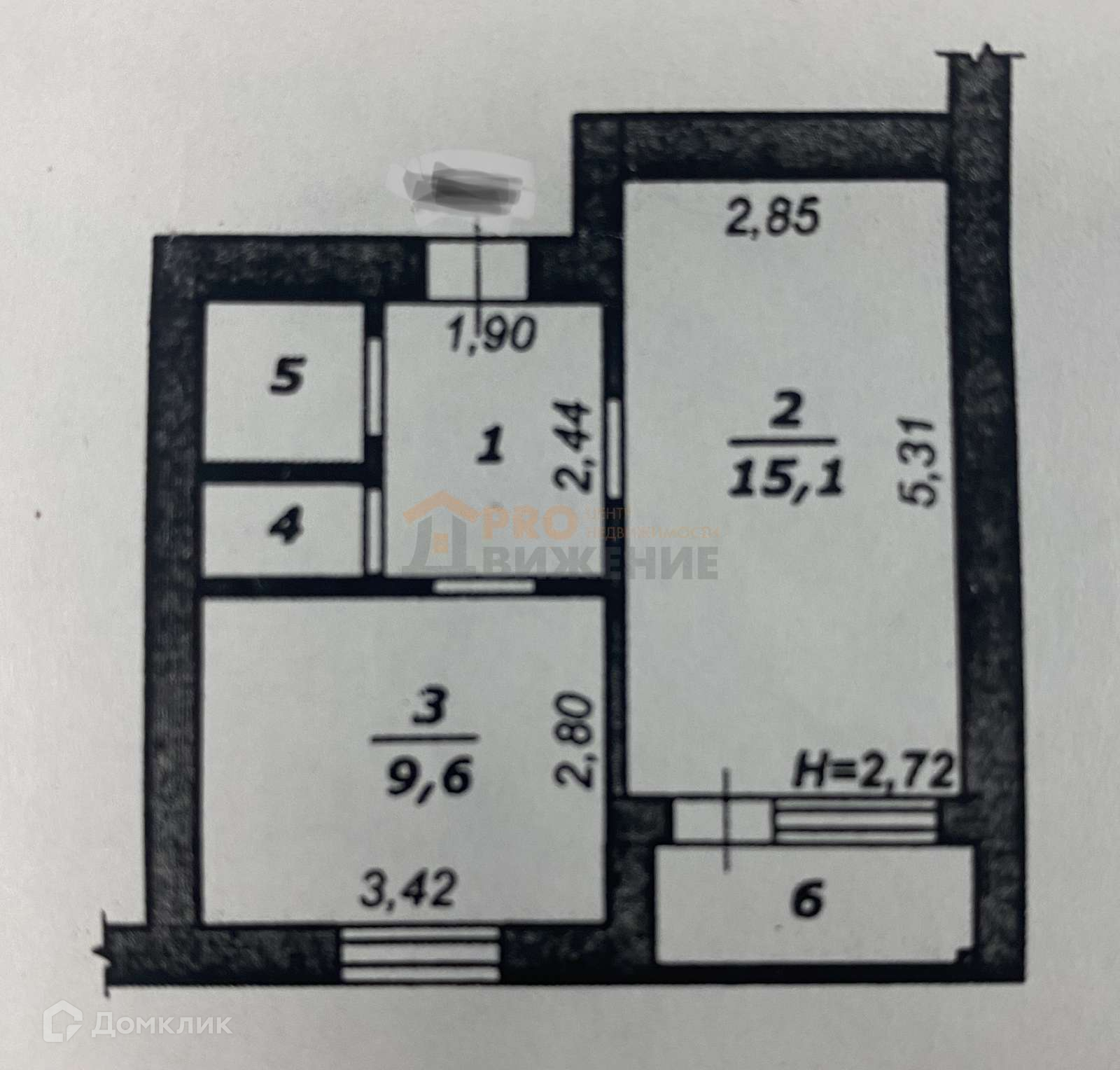 Общая площадь 34.1 м2