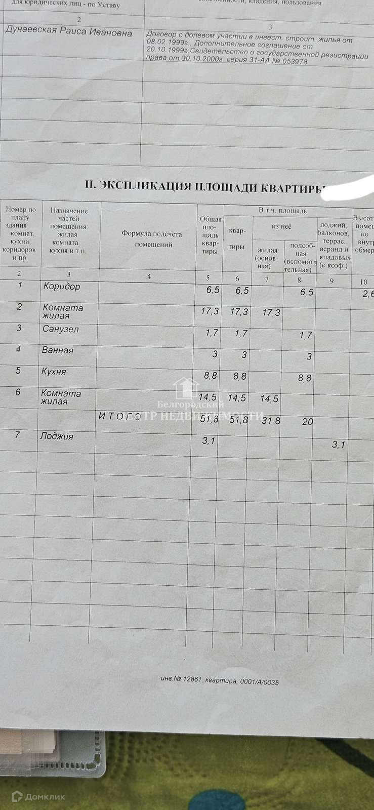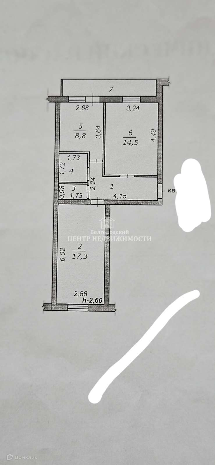 Общая площадь 52 м2
