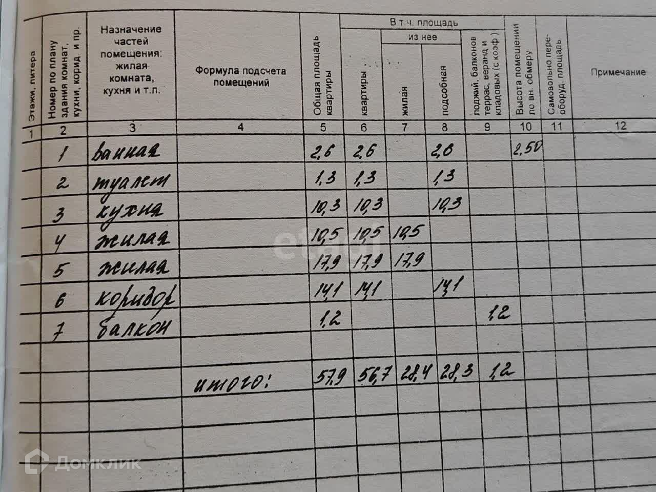 Общая площадь 57.9 м2