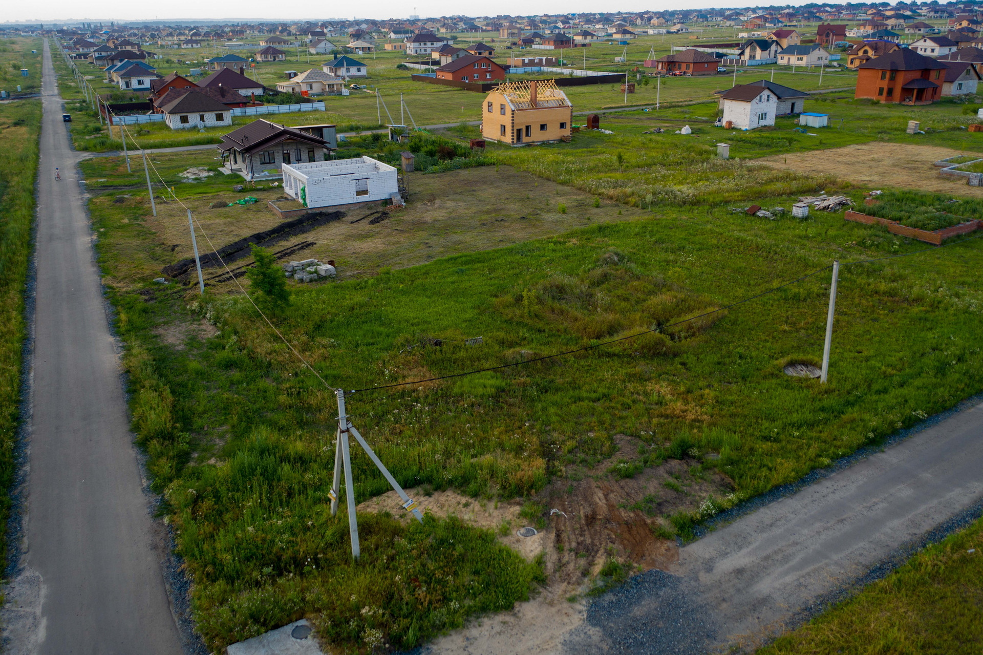 Коммуникации по границе участка, современный массив в непосредственной близости к городу.