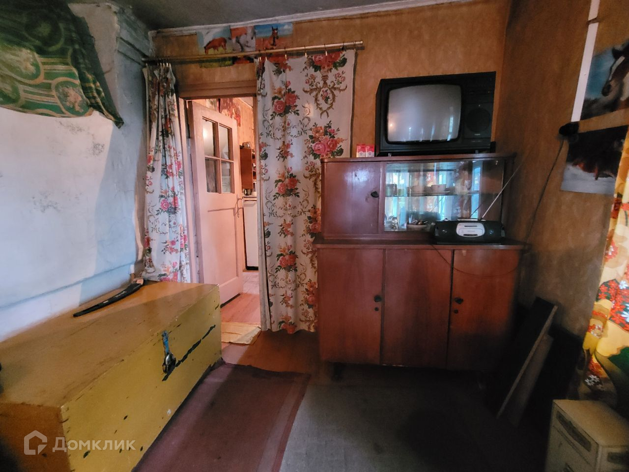 Планировка - терраса, кухня-столовая, гостиная, спальня, сухой подвал 1.5м высотой. На кухне находится русская печь. Также в доме остаётся много уютной, раритетной мебели советских времен.