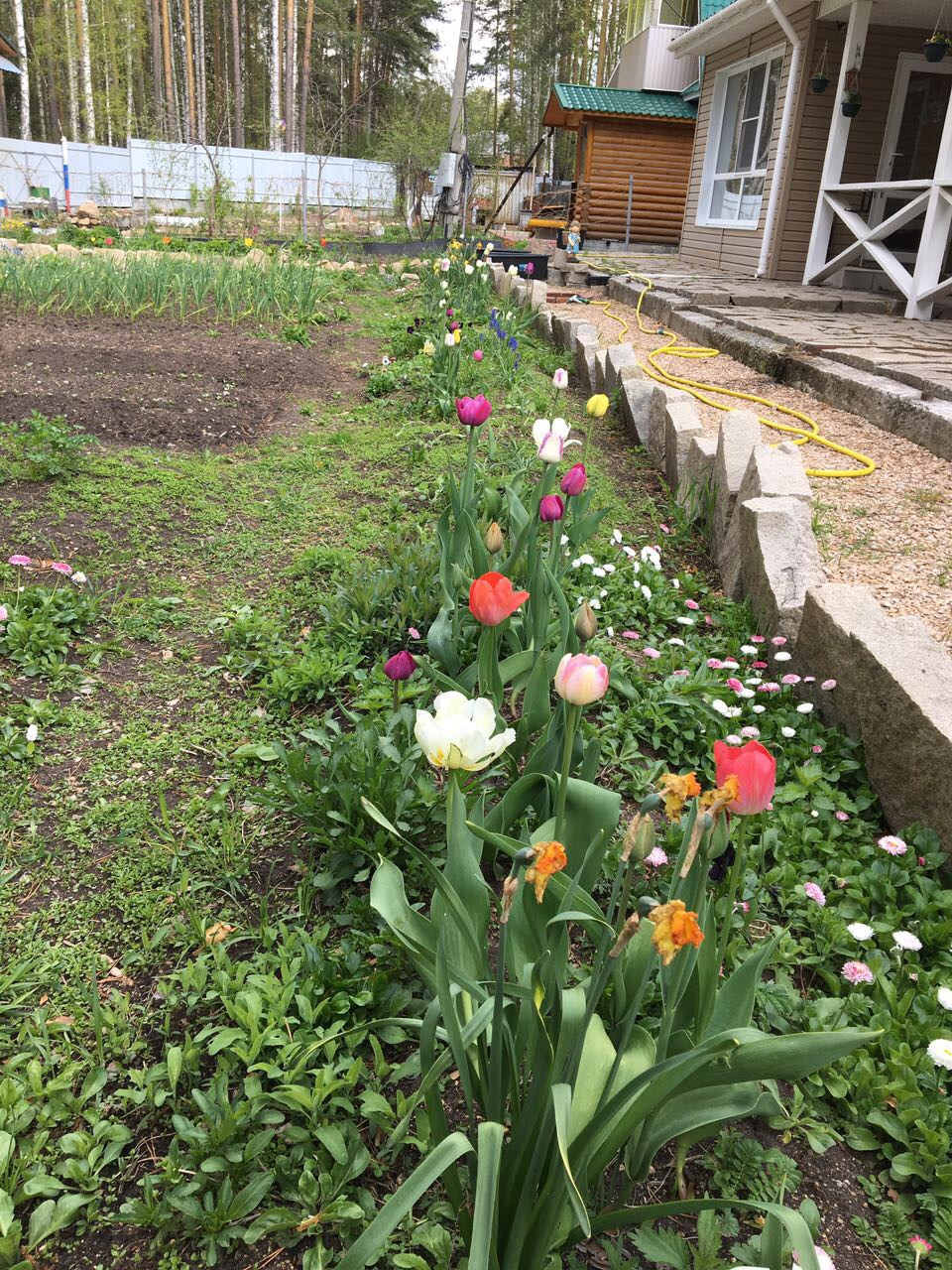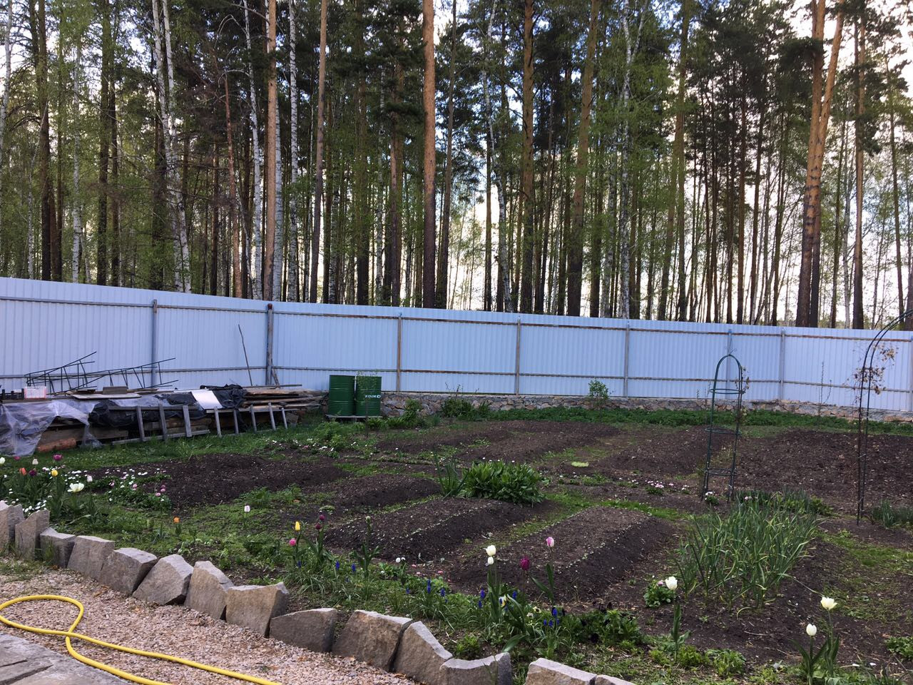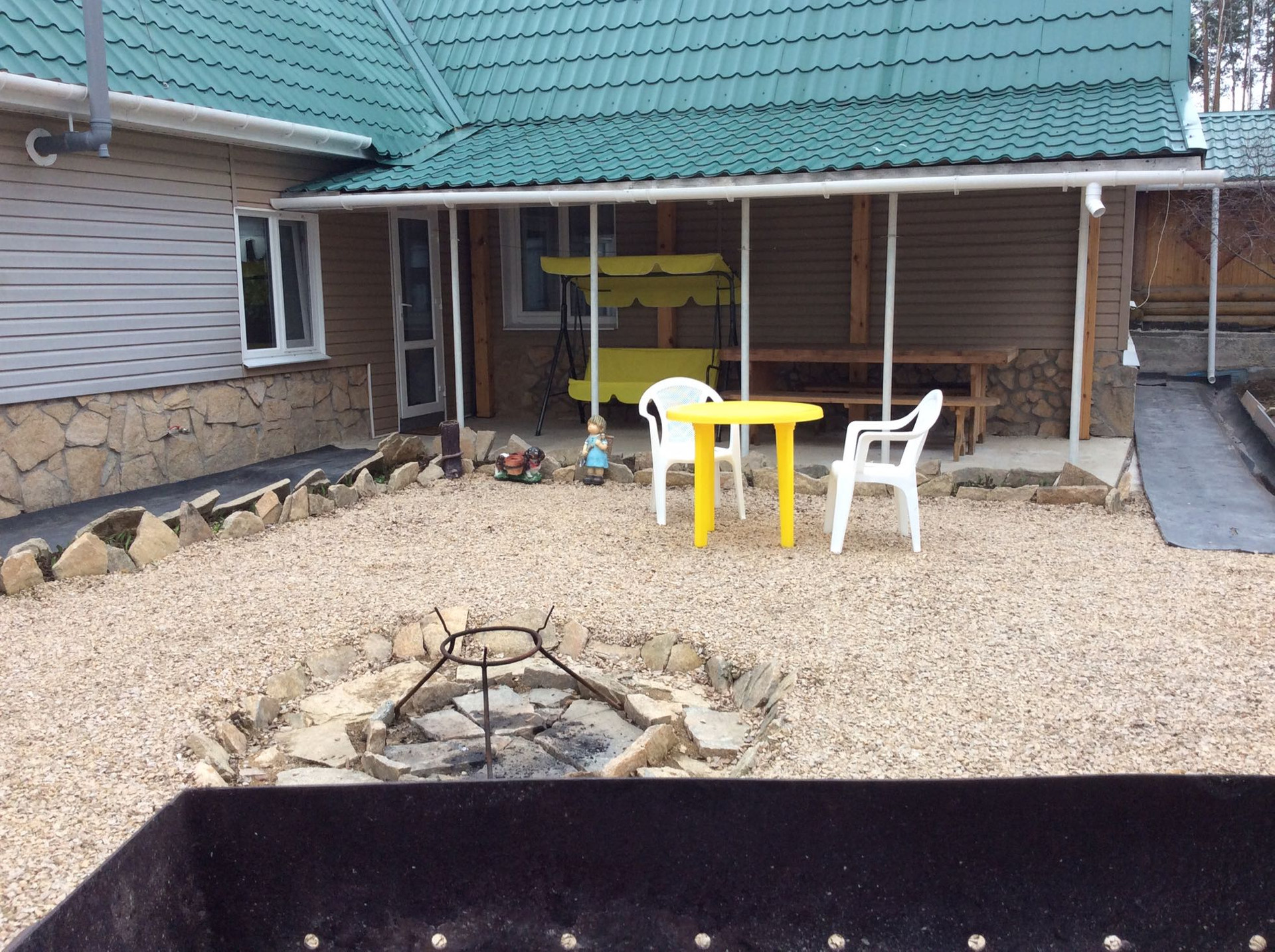 Просторный гараж на 2 машины. Во дворе зона барбекю с навесом. На территории посажены многолетние цветы, яблони и другие кустарники. Земля в частной собственности.