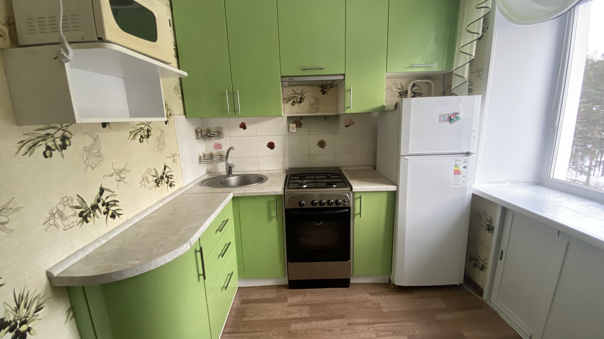 Продаем двухкомнатную квартиру. Светлая, теплая, кухонный гарнитур оставляем. Рядом школа, детский сад, магазины.