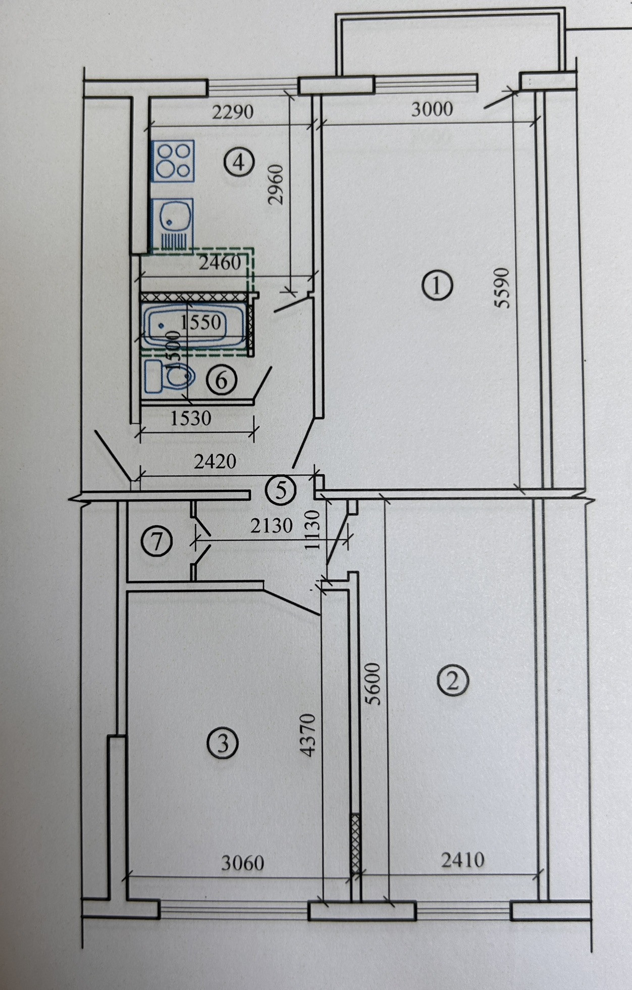 В квартире сделана перепланировка УЗАКОНЕННАЯ - увеличена кухня + построен балкон.