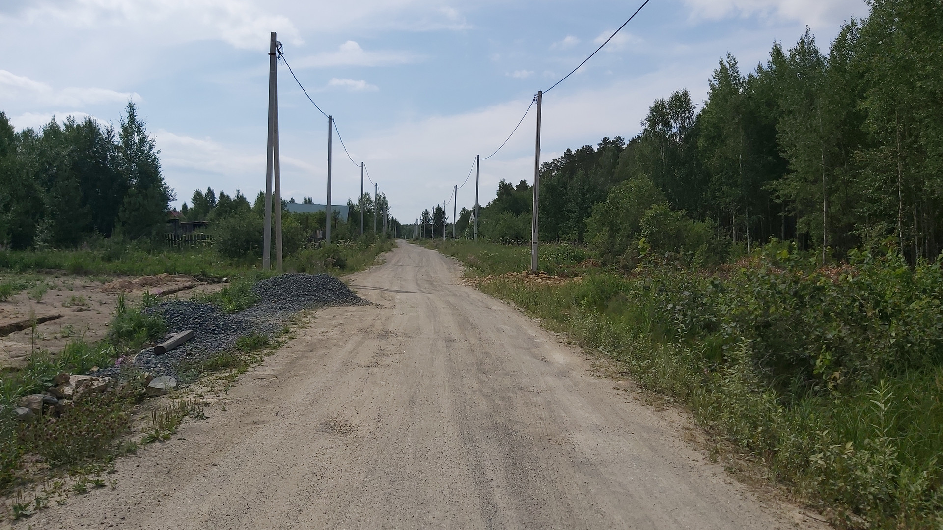 В районе 47 га (индивидуальная застройка), участок 11,5 сотки в собственности, отмежеван. Не очищен от поросли. Отсыпана дорога, электричество проведено.