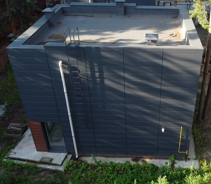 Фасад вентилируемый из метало-касет с утеплителем из каменной ваты толщиной 150 мм.